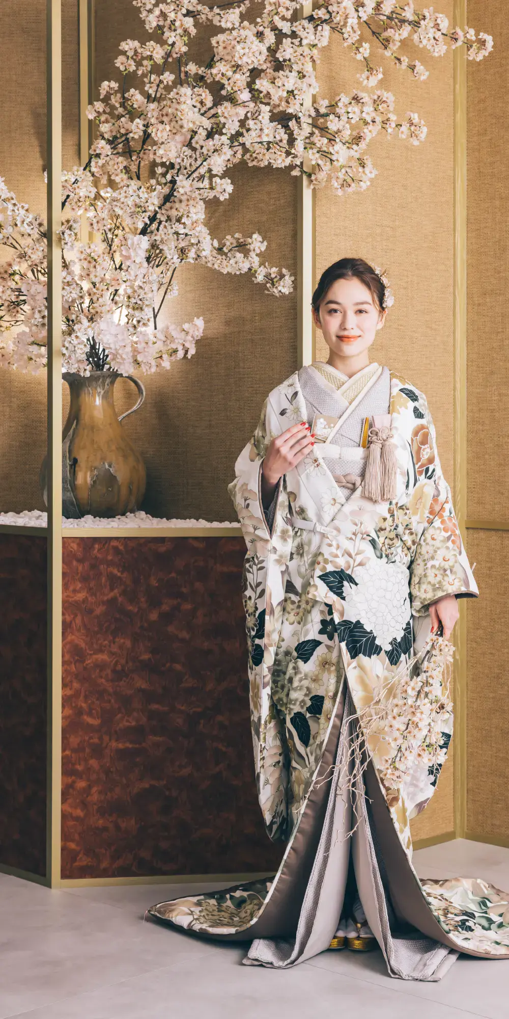 色打掛・白無垢・引き振袖を常時100着以上ストック。一流ホテル・人気ゲストハウスの結婚式でも使われる本物の和装のクオリティをお楽しみください