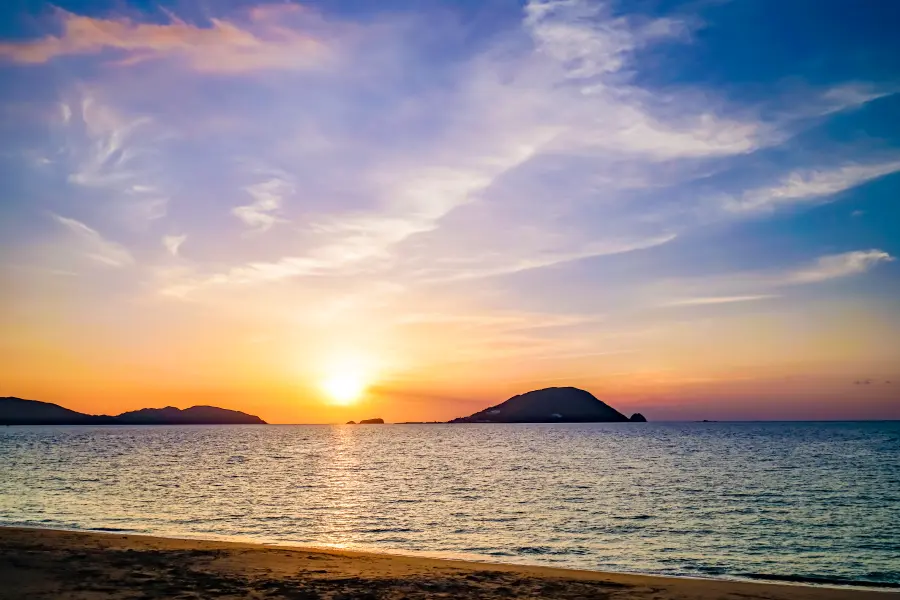 青く美しいビーチと水平線に沈む夕日の絶景を堪能できるロケーションフォト。ロマンチックなサンセットを撮りたい方にオススメです。