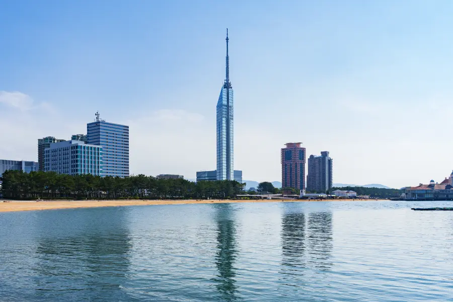 近代的な街並みと、博多湾をはさんで能古島や海の中道を望む美しい自然が好対照なロケーションフォト。モダンな一枚を残したい方にオススメなスポットです。
