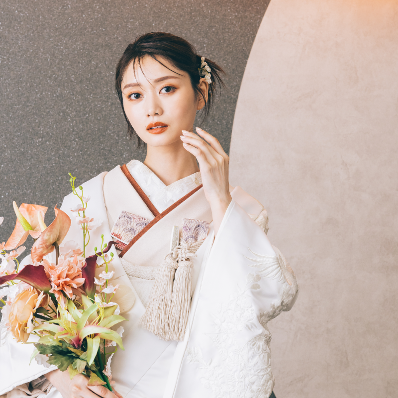 白無垢特有のシルエットは凛とした美しさを際立てます。