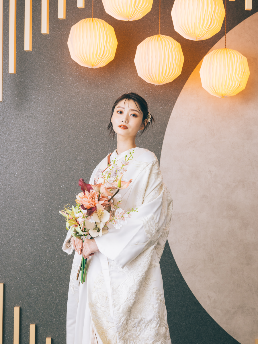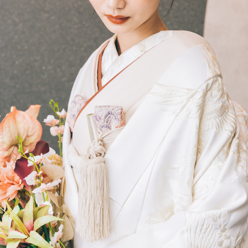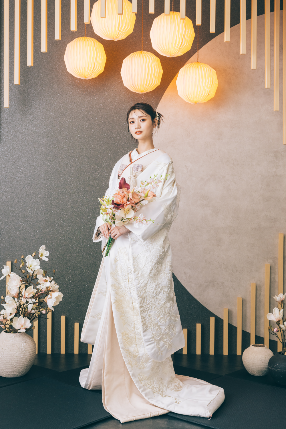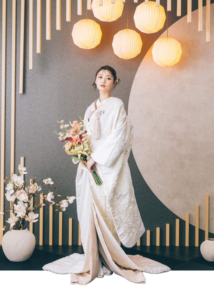 白無垢特有のシルエットは凛とした美しさを際立てます。
