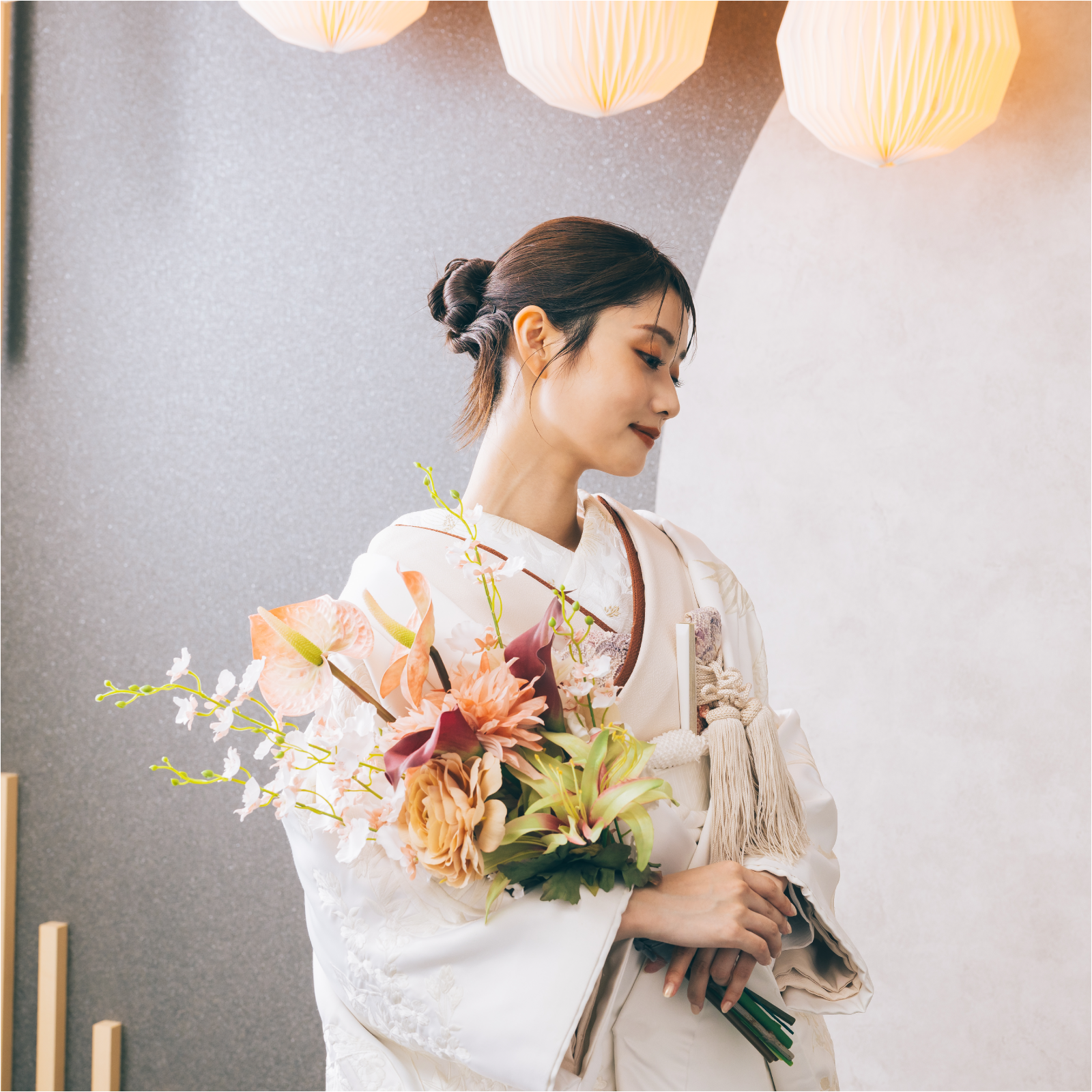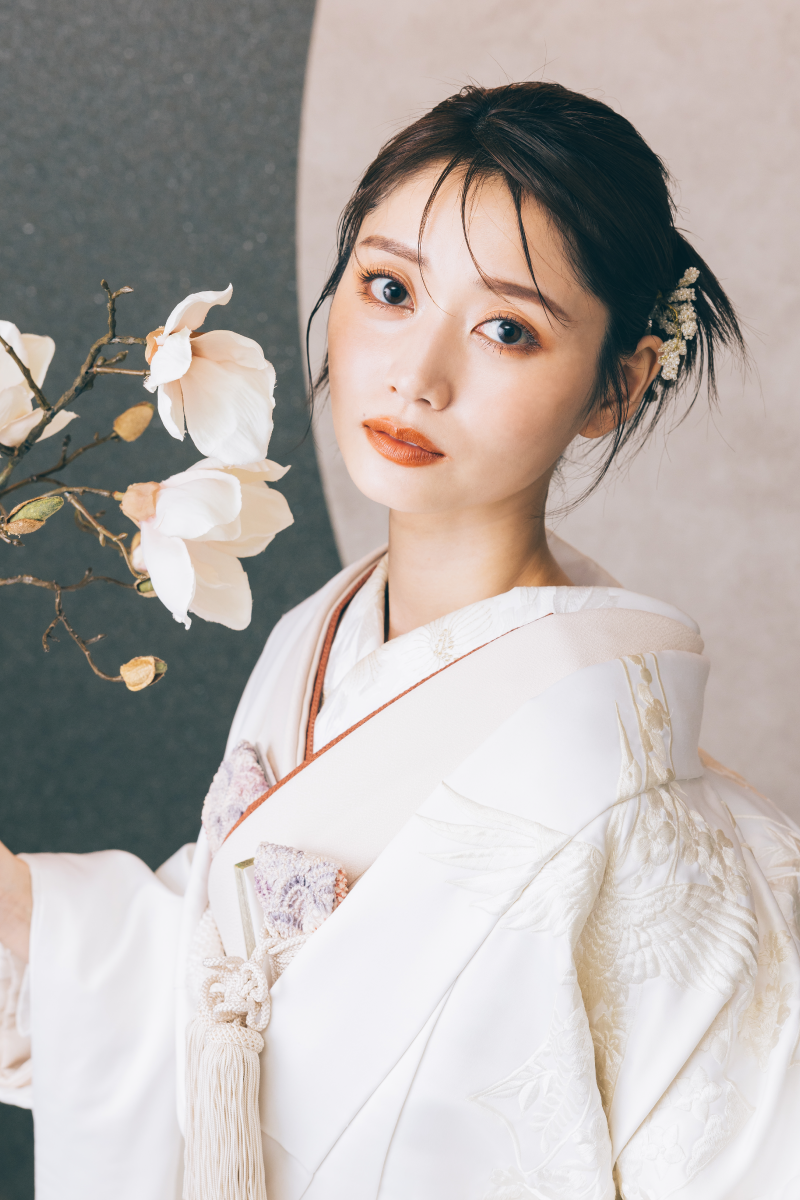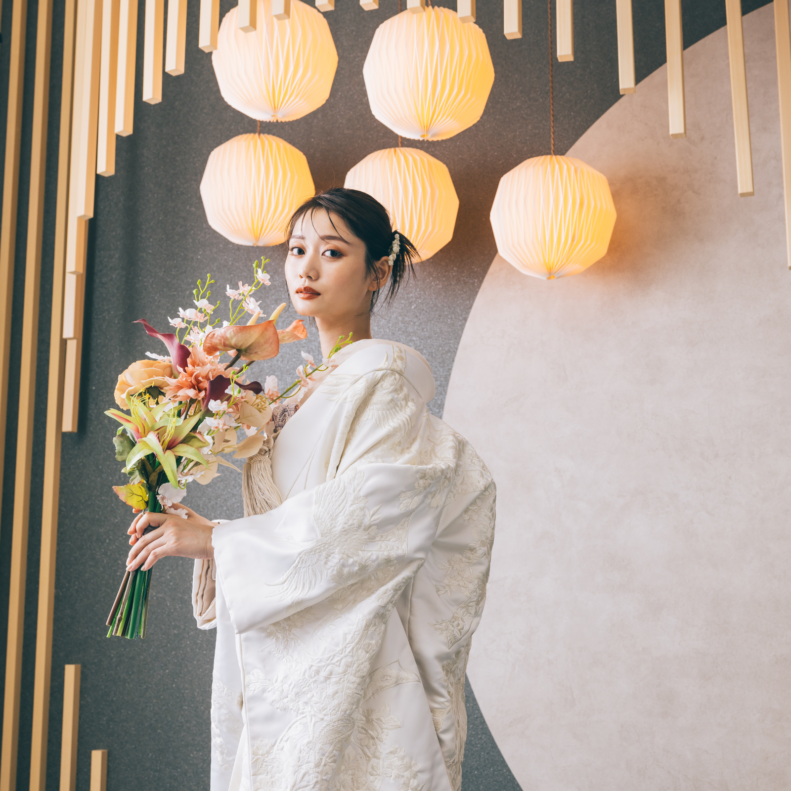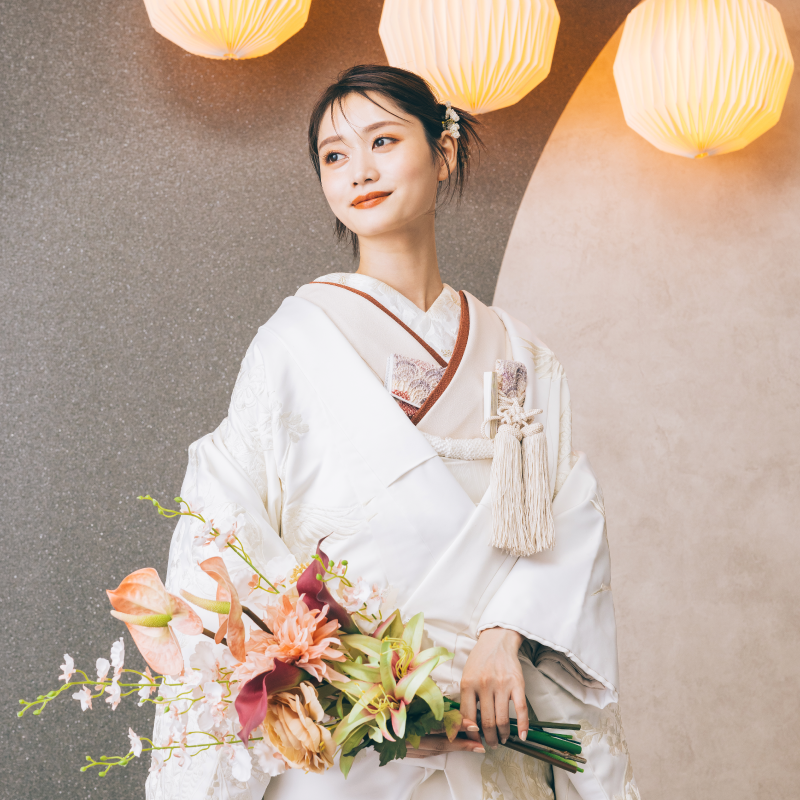 白無垢特有のシルエットは凛とした美しさを際立てます。