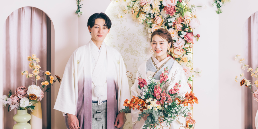 大切な人と一緒に写すウェディングフォトだから、お洒落には徹底的にこだわりたい。écrinなら色打掛&白無垢の2着で撮影。上質な和装コレクションから追加料金なしでお好みの2着を選べます。もちろん、引き振袖も追加料金不要です。結婚式&披露宴というイメージで選ぶのも素敵。