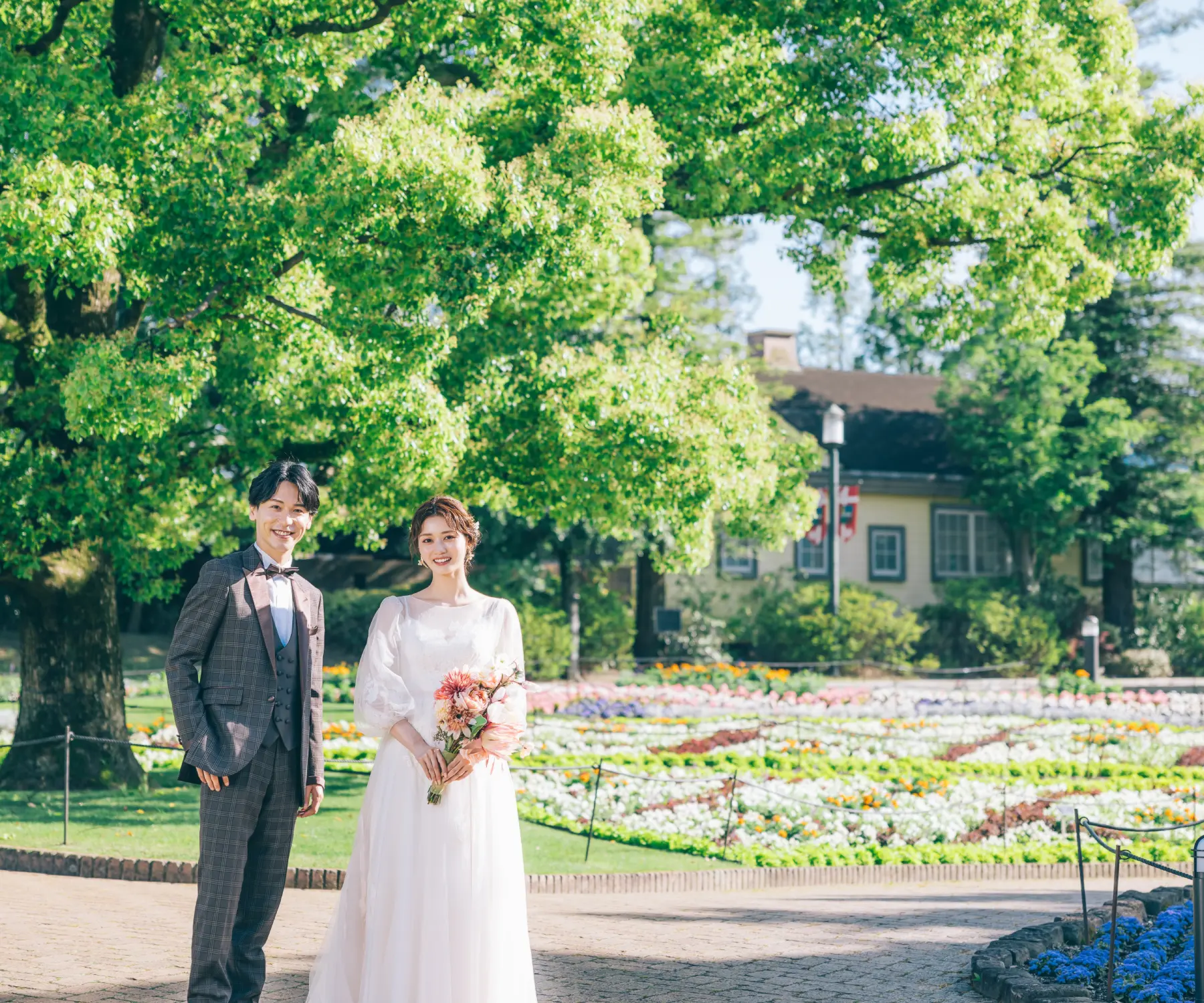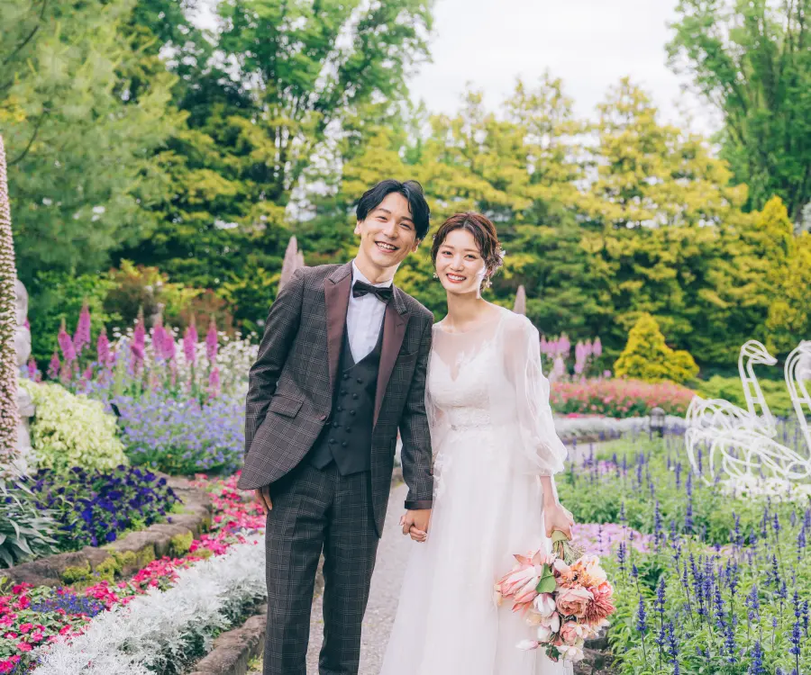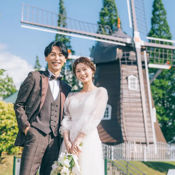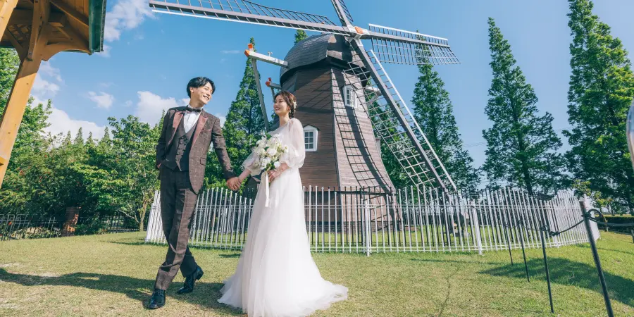 デンパークは、約13万㎡の広さを誇り、自然をめいっぱい楽しむことができる観光施設。一年を通して約3300種類もの四季の花を楽しむことができ、まるで海外でお散歩をしているような写真を撮ることができます。自然を楽しむウェディングフォトを撮りたい方におすすめです。