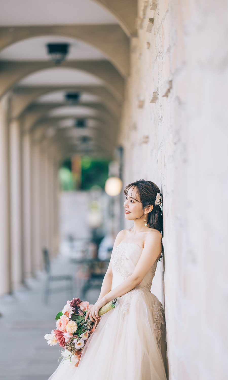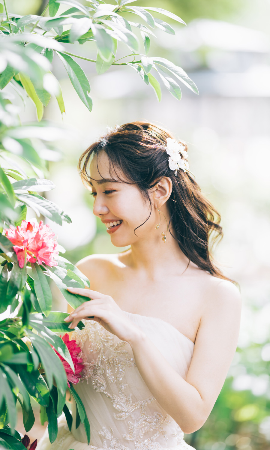 アップめの写真には丁寧な美肌加工を、体型が見えやすい全身写真にはボディラインの補正を。本当に美しいウェディングフォトをPhoto Maison écrinが叶えます。