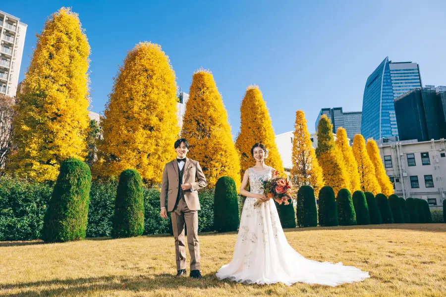紅葉に囲まれたロケーションフォトをご希望の方にオススメ。いちょうや四季に飾られるもみじは二人を癒してくれること間違いなし。自然な写真から神秘的な写真まで様々な撮影が可能です。