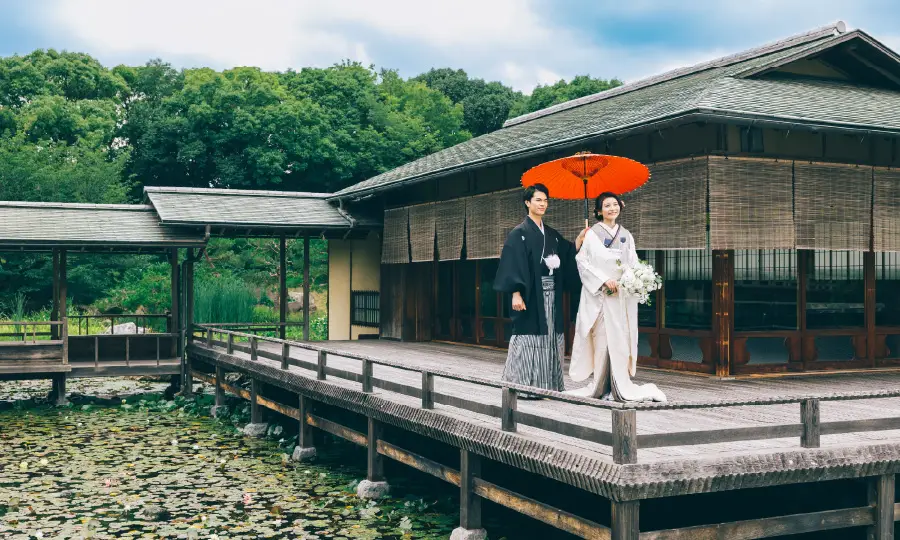 名古屋の池泉回遊式の日本庭園であり、大きな湖が美しい徳川園。流れる水の音と美しい自然が広がる景色を楽しみながら撮影ができます。名古屋市民の憩いの場である徳川園での撮影はいかがですか。