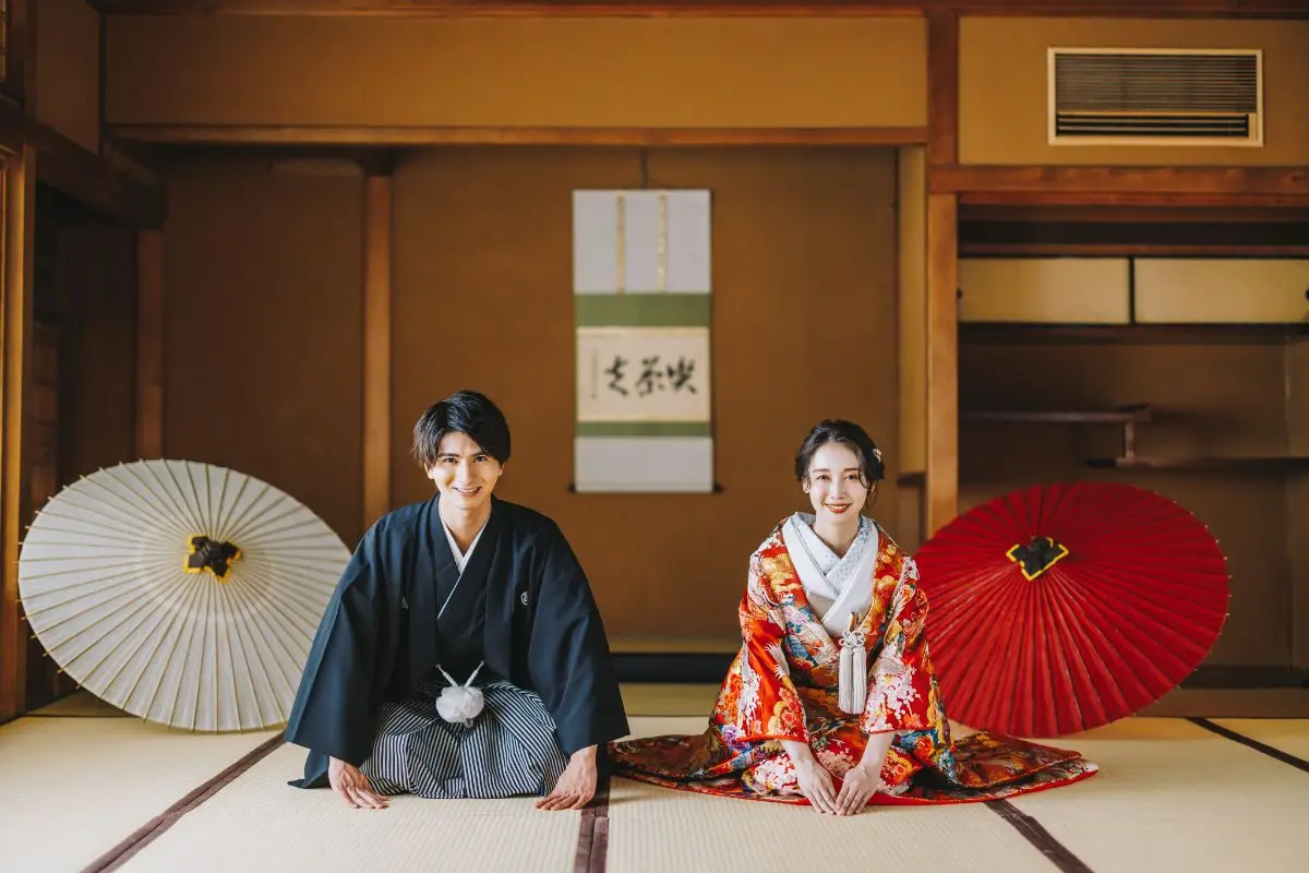 一生に一度のウェディングフォトだから、妥協したくない憧れの和装撮影。 écrinでは上質な和装色打掛・白無垢を豊富にご用意しております。ロケ地のイメージに合わせて、お洒落に小物の色使いを変えてもOK!衣装にこだわった和装ロケーション撮影をお楽しみ下さい。