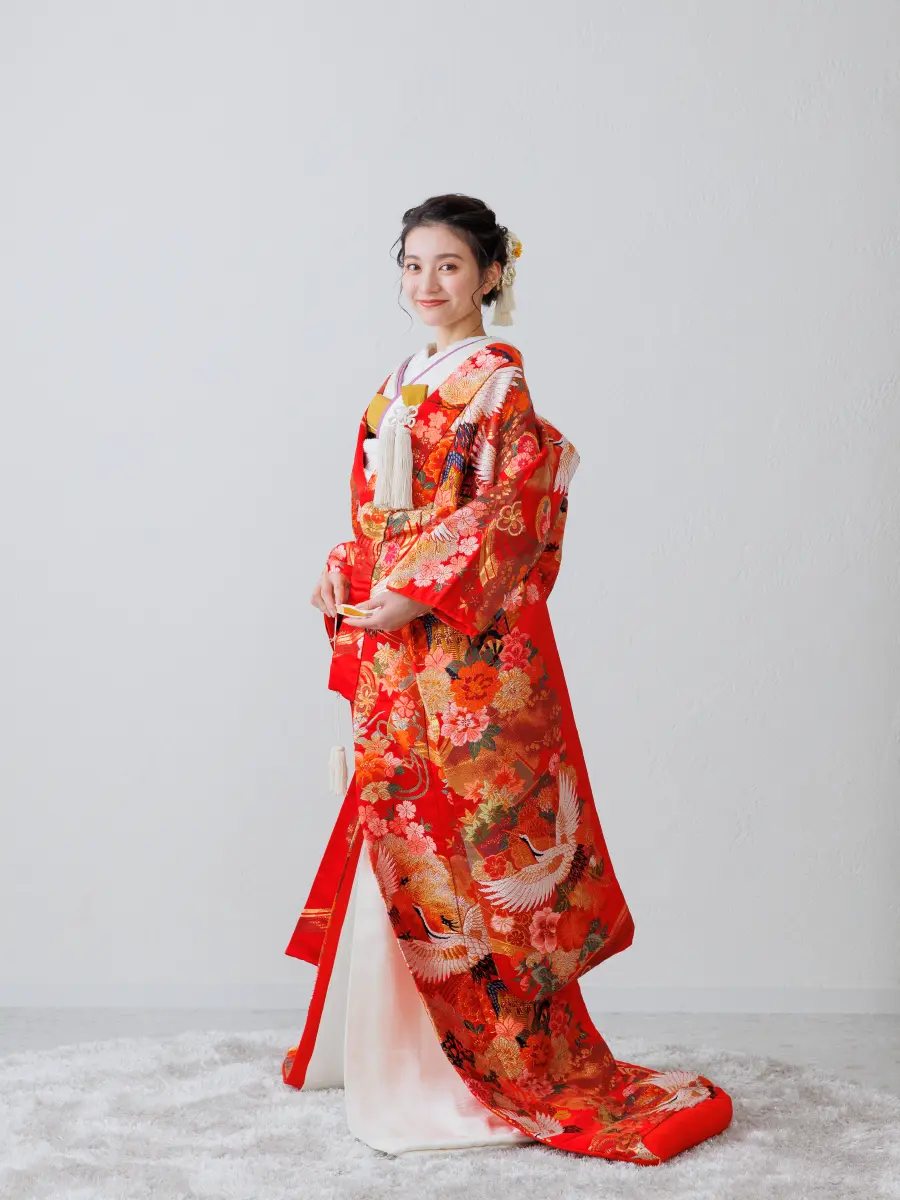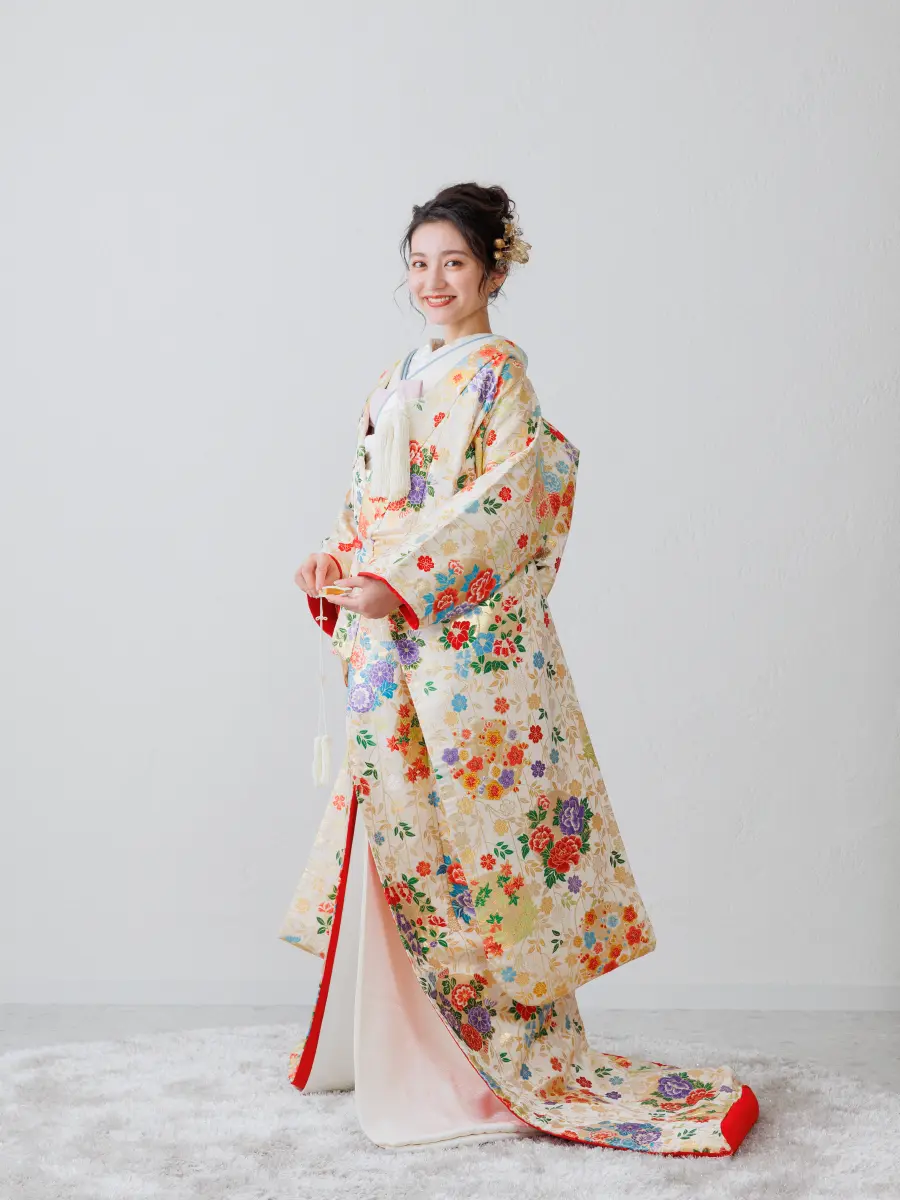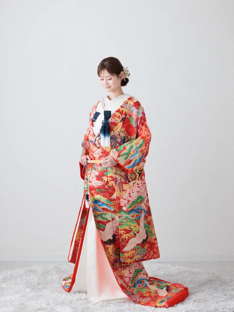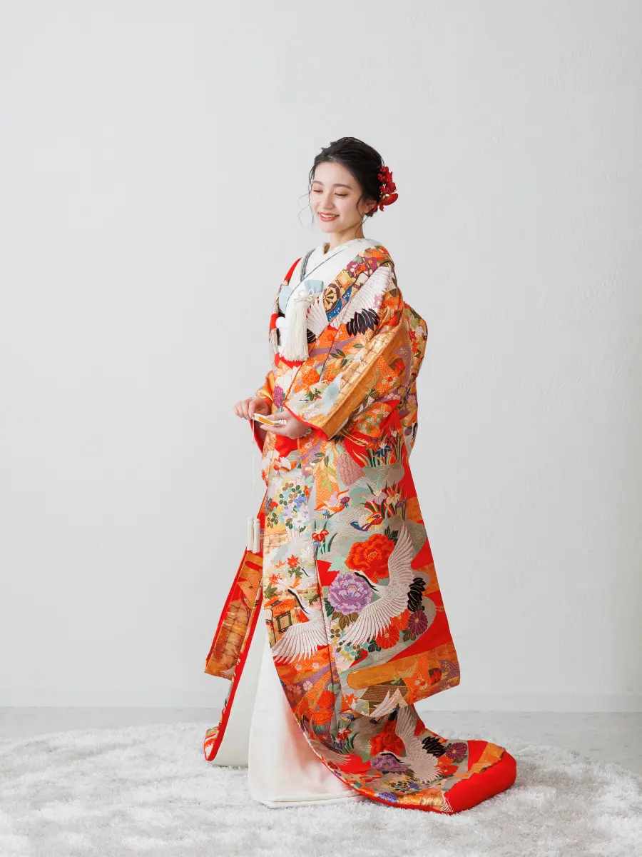 ロケーションフォトにおすすめの色打掛・白無垢をご紹介。人気ゲストハウスの結婚式でも使われる本物の和装のクオリティをお楽しみください。
