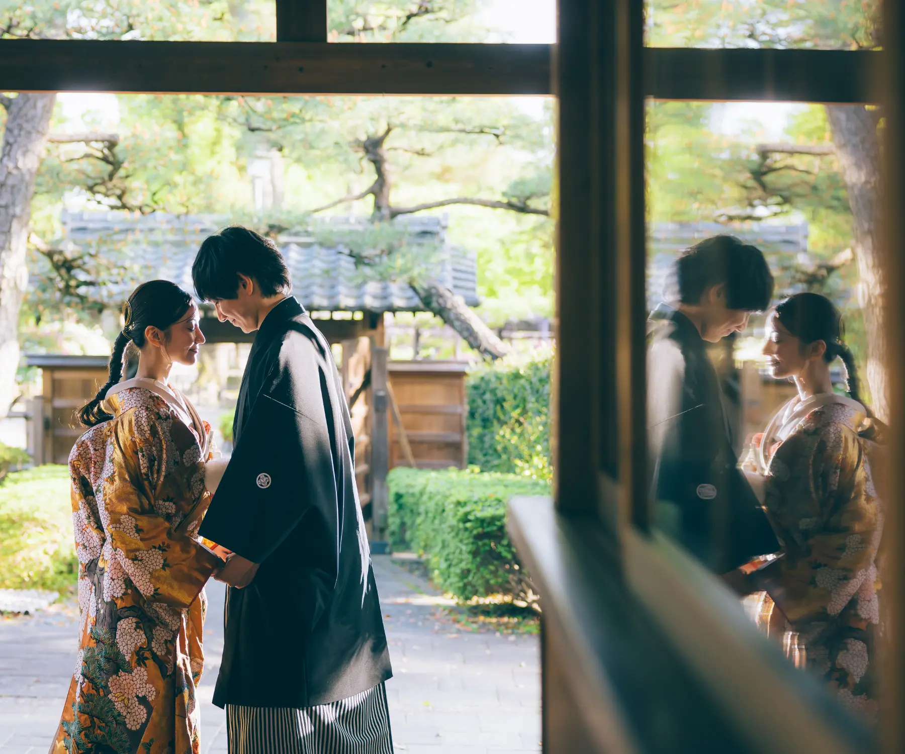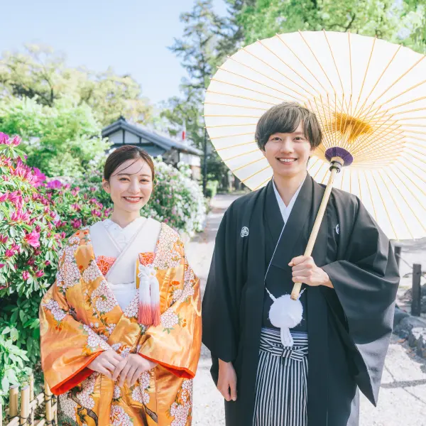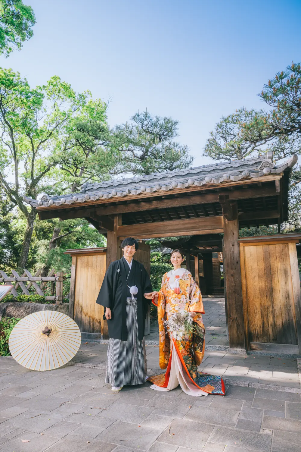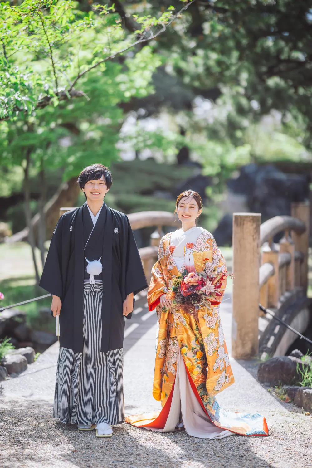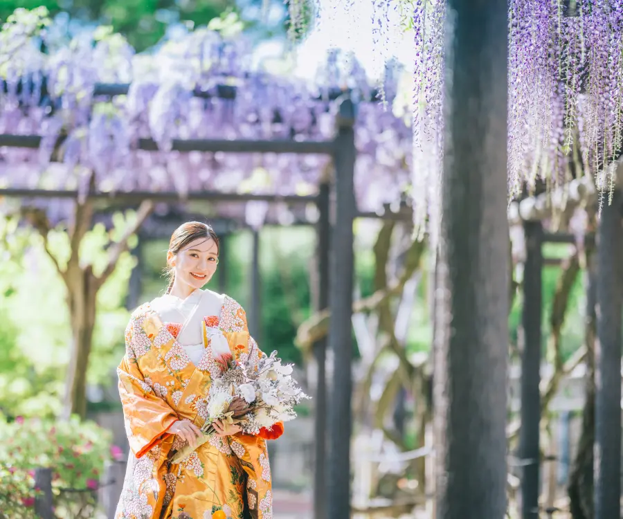 「中村公園」は1885(明治18)年に建てられた豊國神社を中心に整備された純日本風廻遊式林泉庭園をもつ公園です。緑豊かな公園で、四季折々の景色を楽しむことができます。藤の木の名所としても知られる中村公園での和装前撮りはいかがでしょうか。