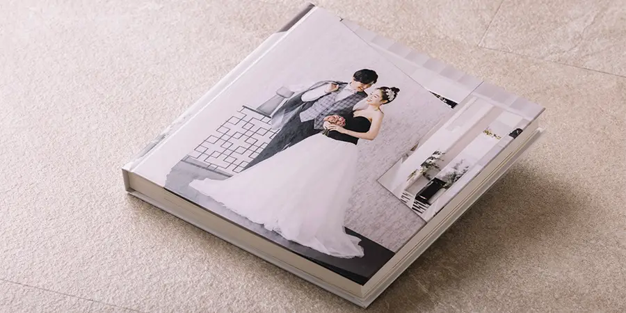 発色と耐久性に定評のある銀塩プリントを採用したプレミアムなデザインアルバム。印画紙の厚みやコーティングにまで徹底的にこだわっています。手に取りやすく、保管もしやすいA4サイズの正方形。お洒落なウェディングフォトをぎゅっと詰め込んだ、宝石箱のような1冊をお届けします。
