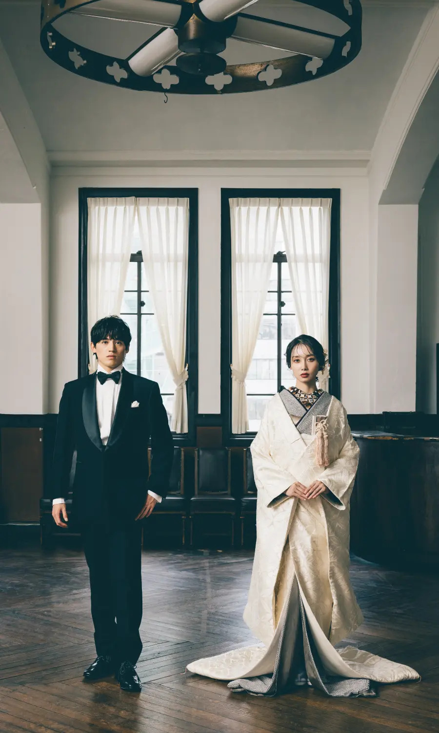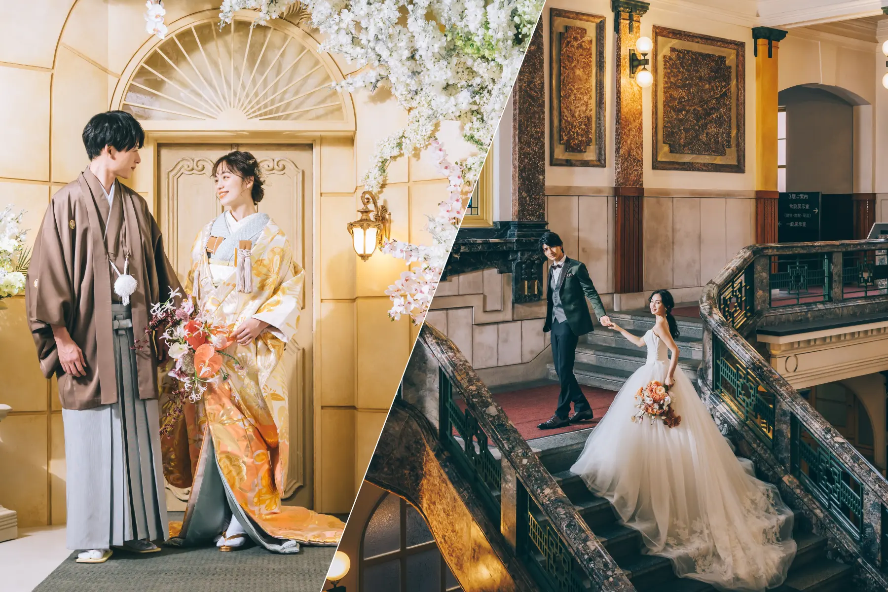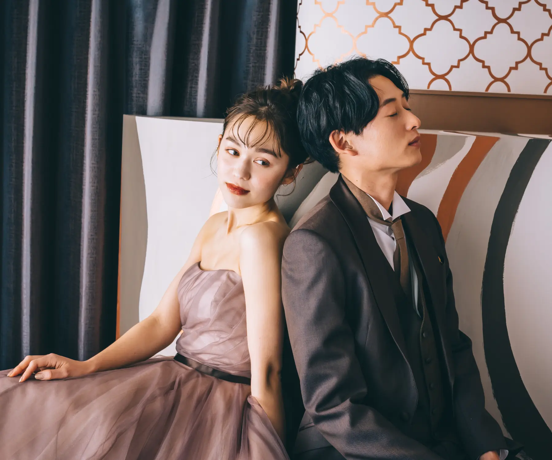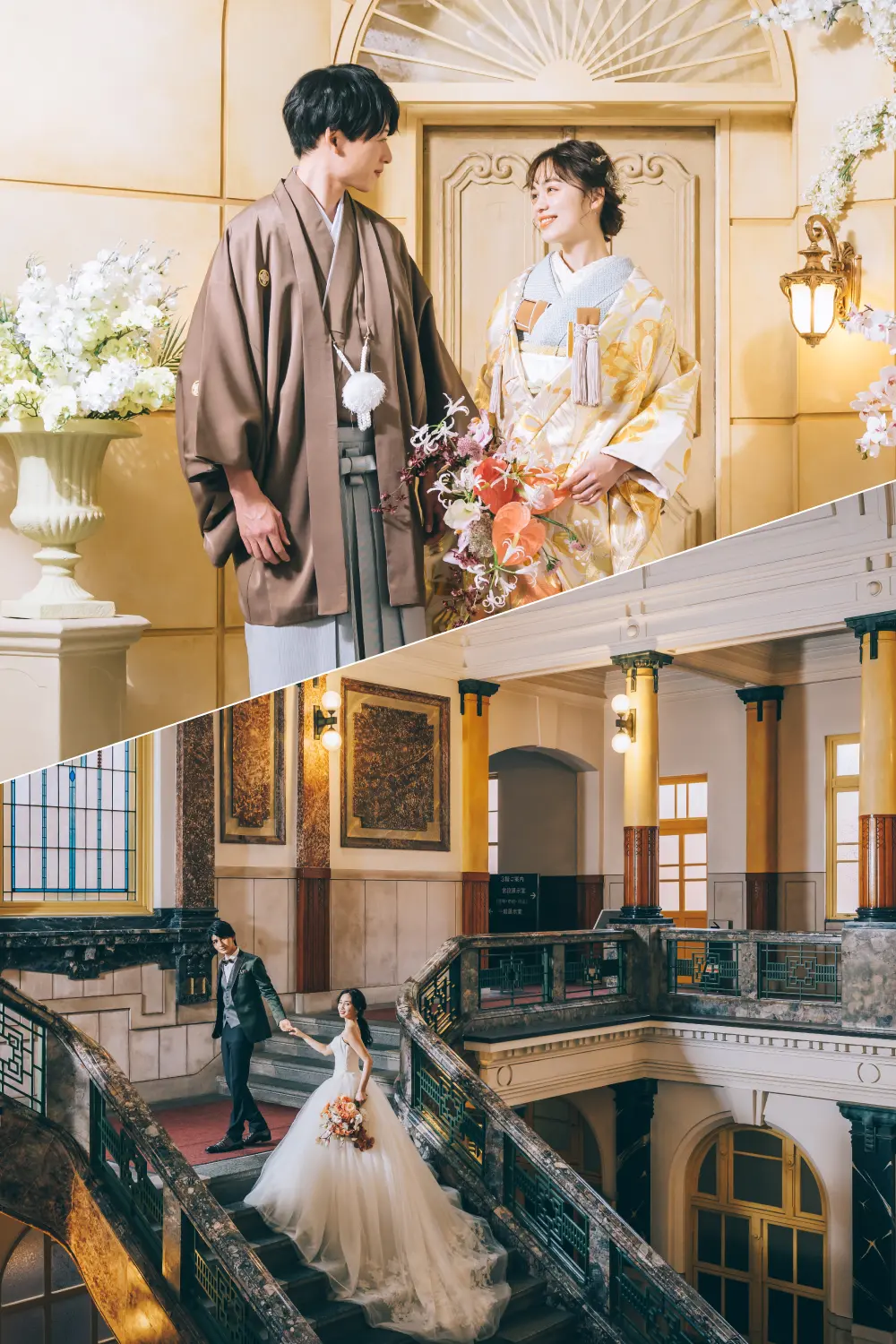 大切な人と一緒に写すウェディングフォトだから、お洒落には徹底的にこだわりたい。écrinのスタジオ+ロケプランなら追加料金なしでお好みの衣裳を2着選べます。
