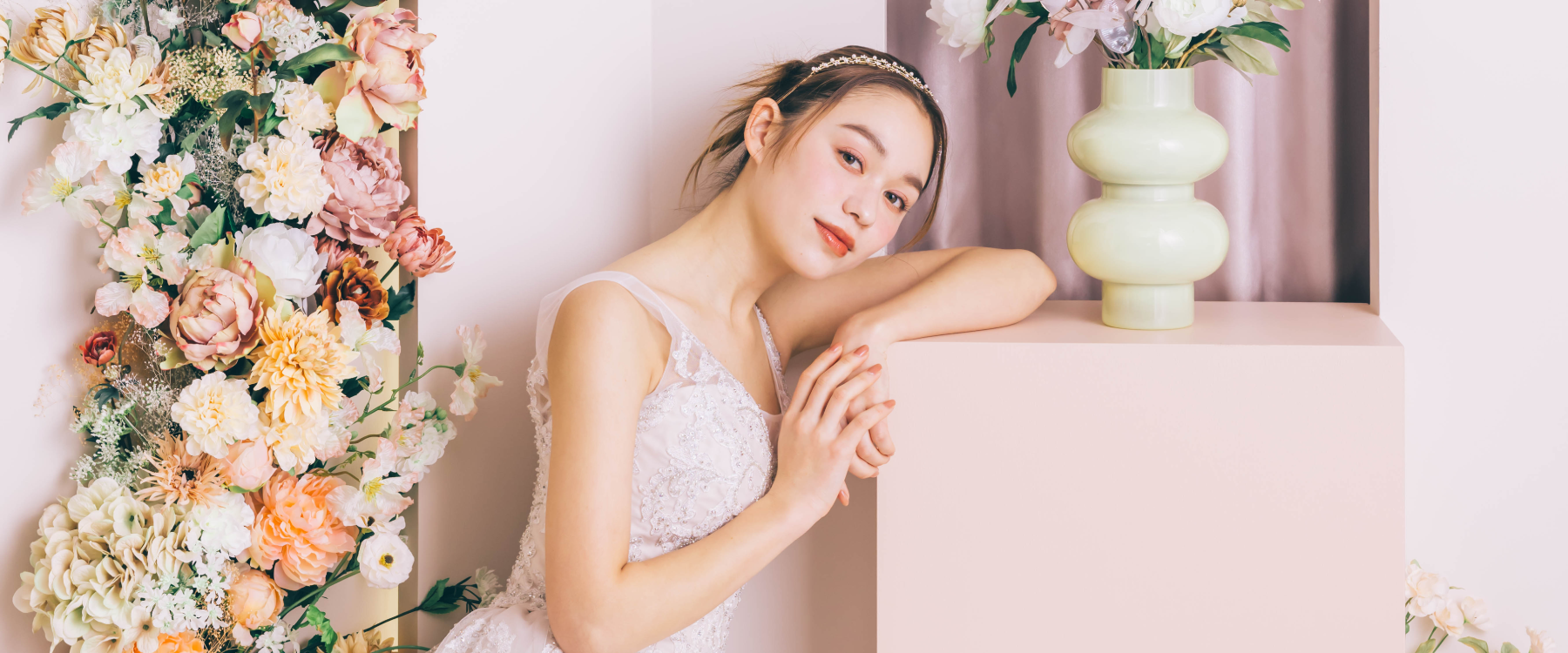 可愛らしい花々が連なり、優しいローズピンクがあふれる魔法のような空間。幸せを映し出すような美しさに心を奪われるはず。理想のウェディングフォトが叶えられます。
