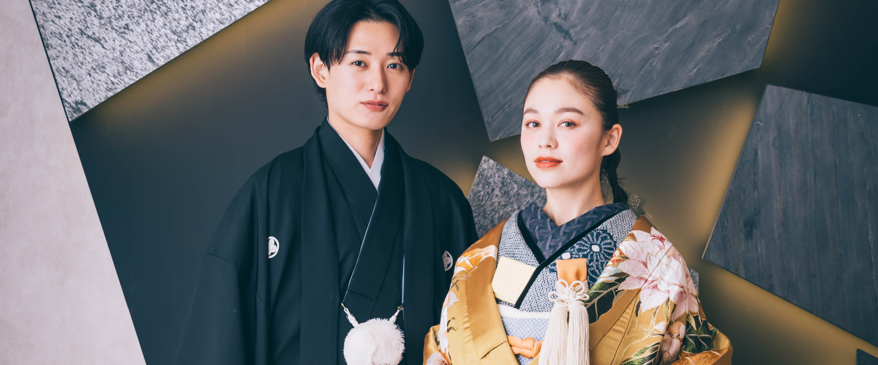 多角形にカットされた石で描かれた幾何学模様。艶めく石の壁をバックに撮影する結婚写真はラグジュアリーな仕上がりに。大人なお二人におすすめです。