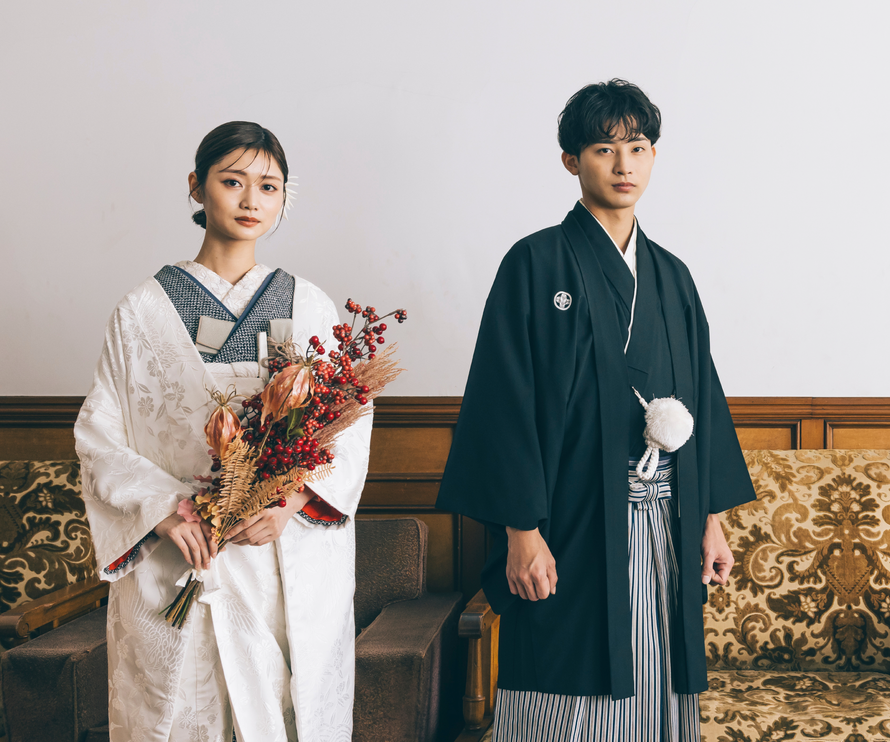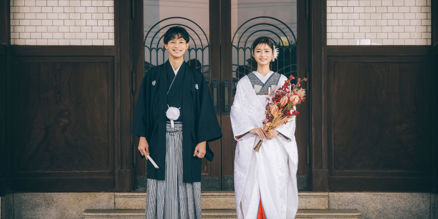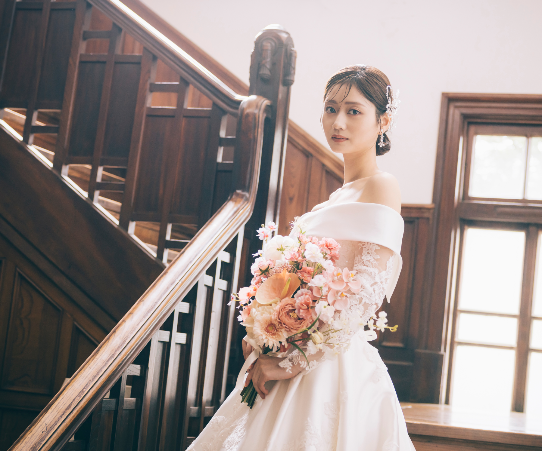 大正時代に建てられた和洋折衷の西洋建築は、フォトウェディングにぴったりのロケーション。ルネサンス様式を基調とした優雅なデザイン、赤レンガと漆喰の外観、繊細な装飾が施された室内、そして日本庭園が織りなす景観が、時を超えた美しさを結婚写真に刻みます。