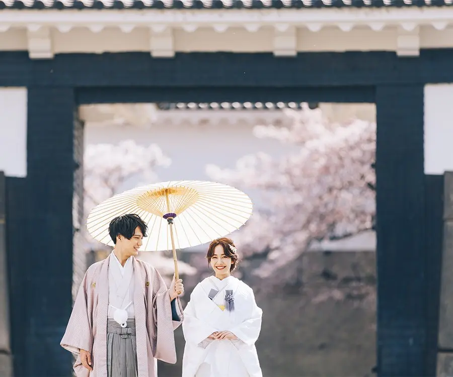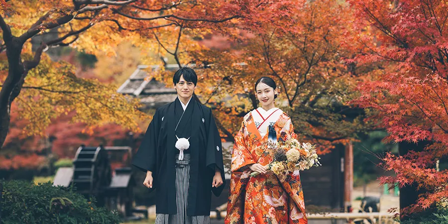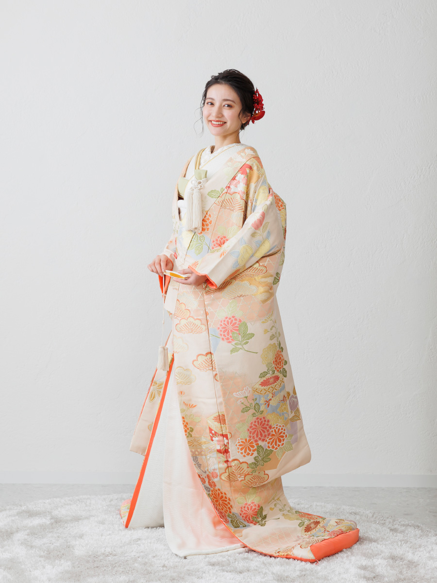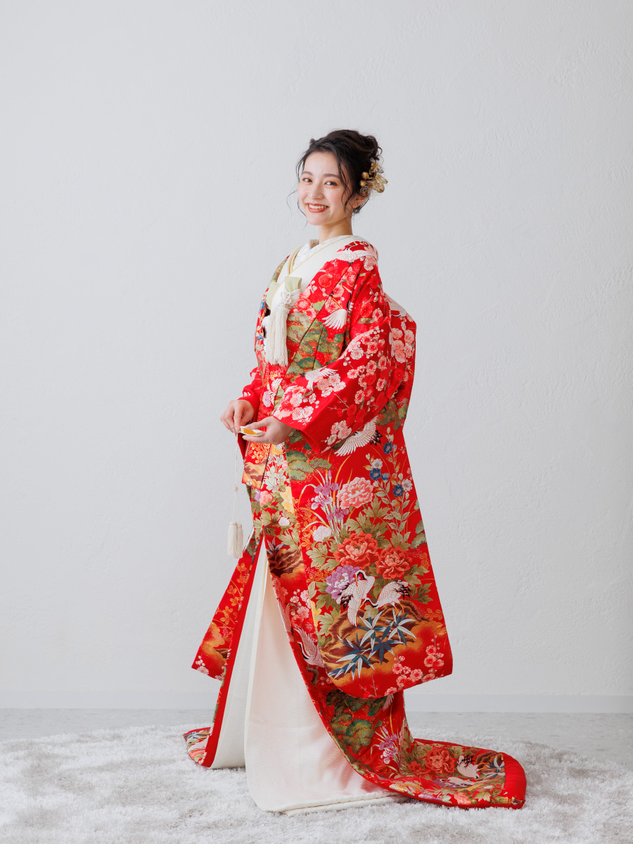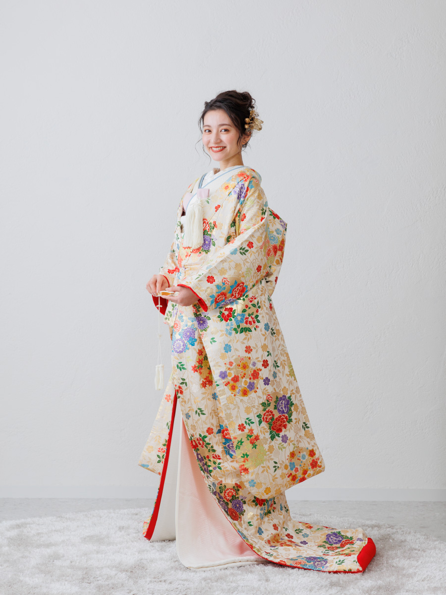 ロケーションフォトにおすすめの色打掛・白無垢をご紹介。人気ゲストハウスの結婚式でも使われる本物の和装のクオリティをお楽しみください。