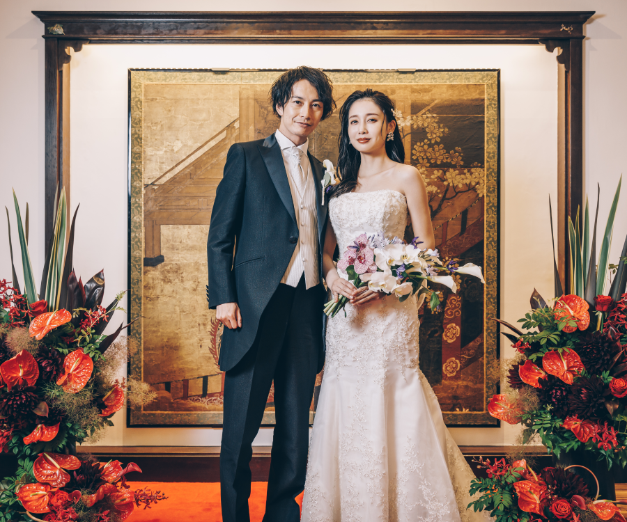 月日が流れるほど価値が高まっていく。それがウェディングフォト。30年後にアルバムを開いた時にも、素敵な二人であるために、背景セットには特にこだわっています。