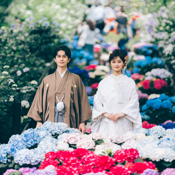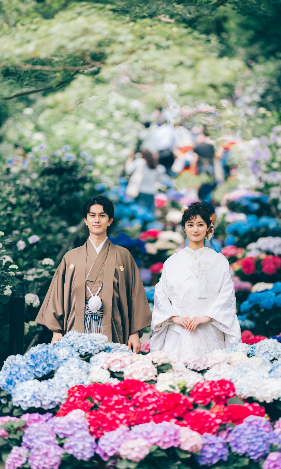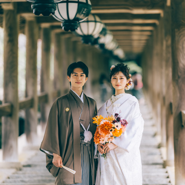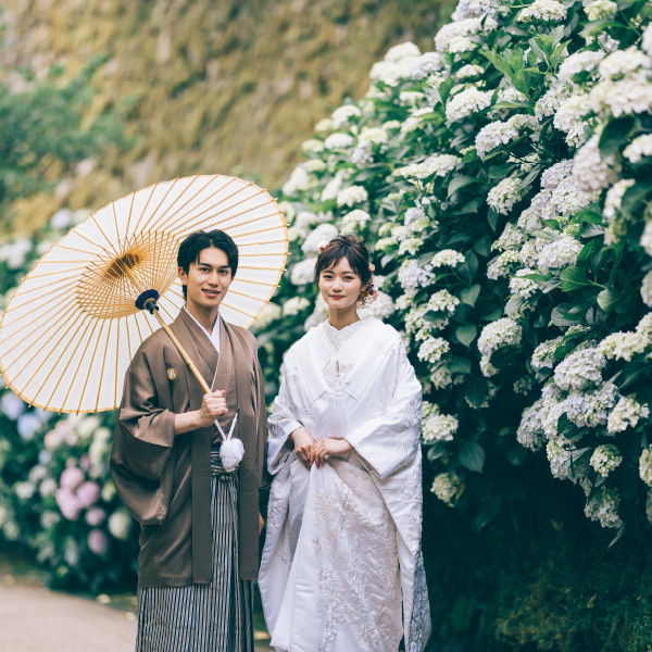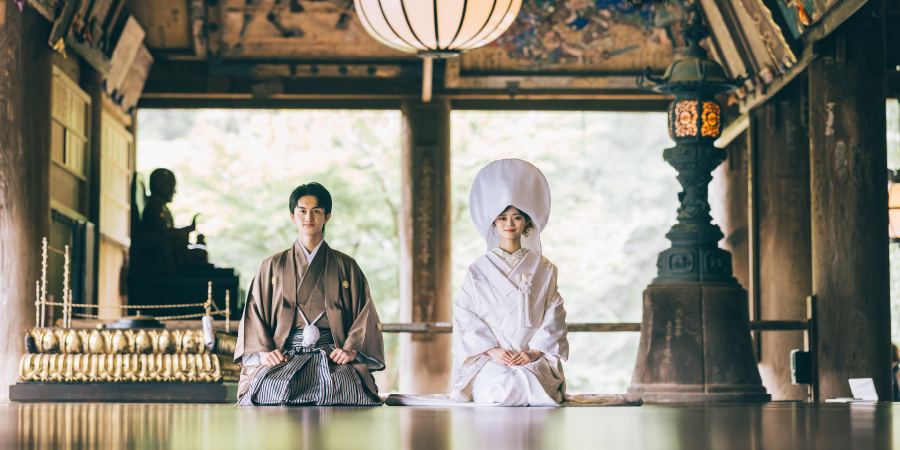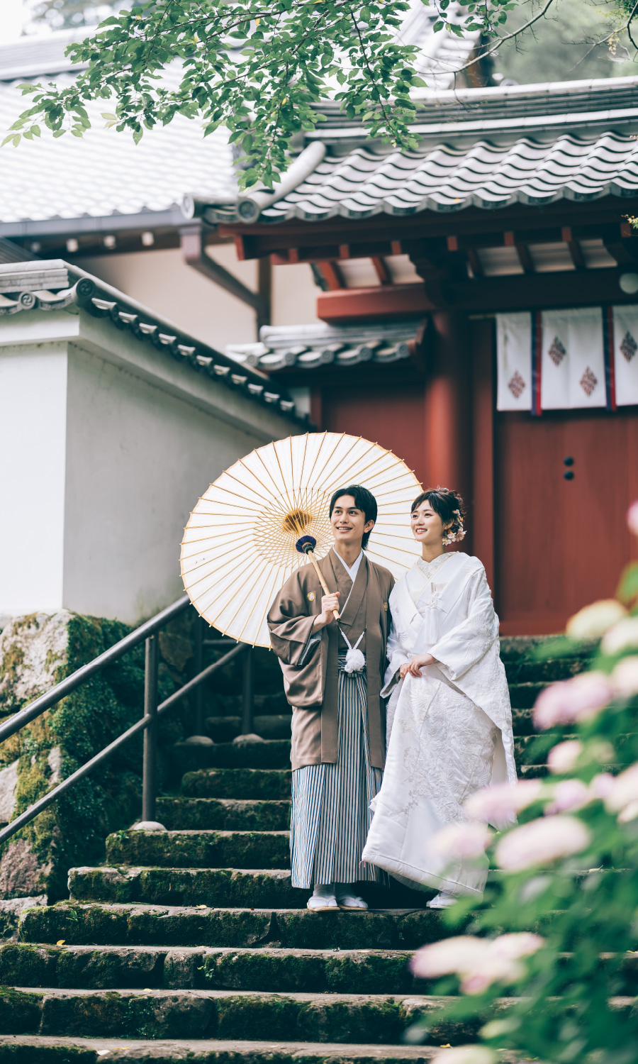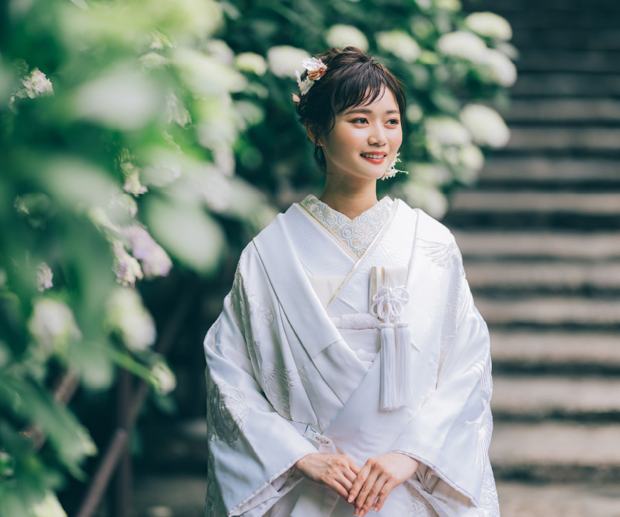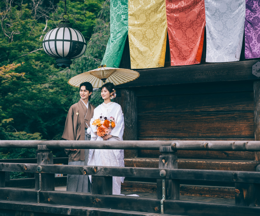 一生に一度のウェディングフォトだから、妥協したくない憧れの和装撮影。 écrinでは上質な和装色打掛・白無垢を豊富にご用意しております。ロケ地のイメージに合わせて、お洒落に小物の色使いを変えてもOK!衣装にこだわった和装ロケーション撮影をお楽しみ下さい。