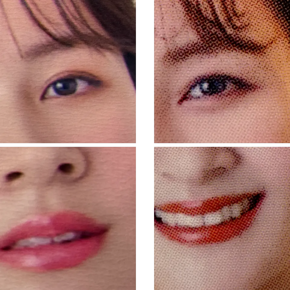 中ページには銀塩写真を採用。銀塩写真は、インクジェットのような4~8色のインクを組み合わせて作る疑似カラーじゃないからこそ、高い再現性と発色が叶えられます。さらに、耐水性・耐光性が高く、色あせにくく保管しやすいです。
