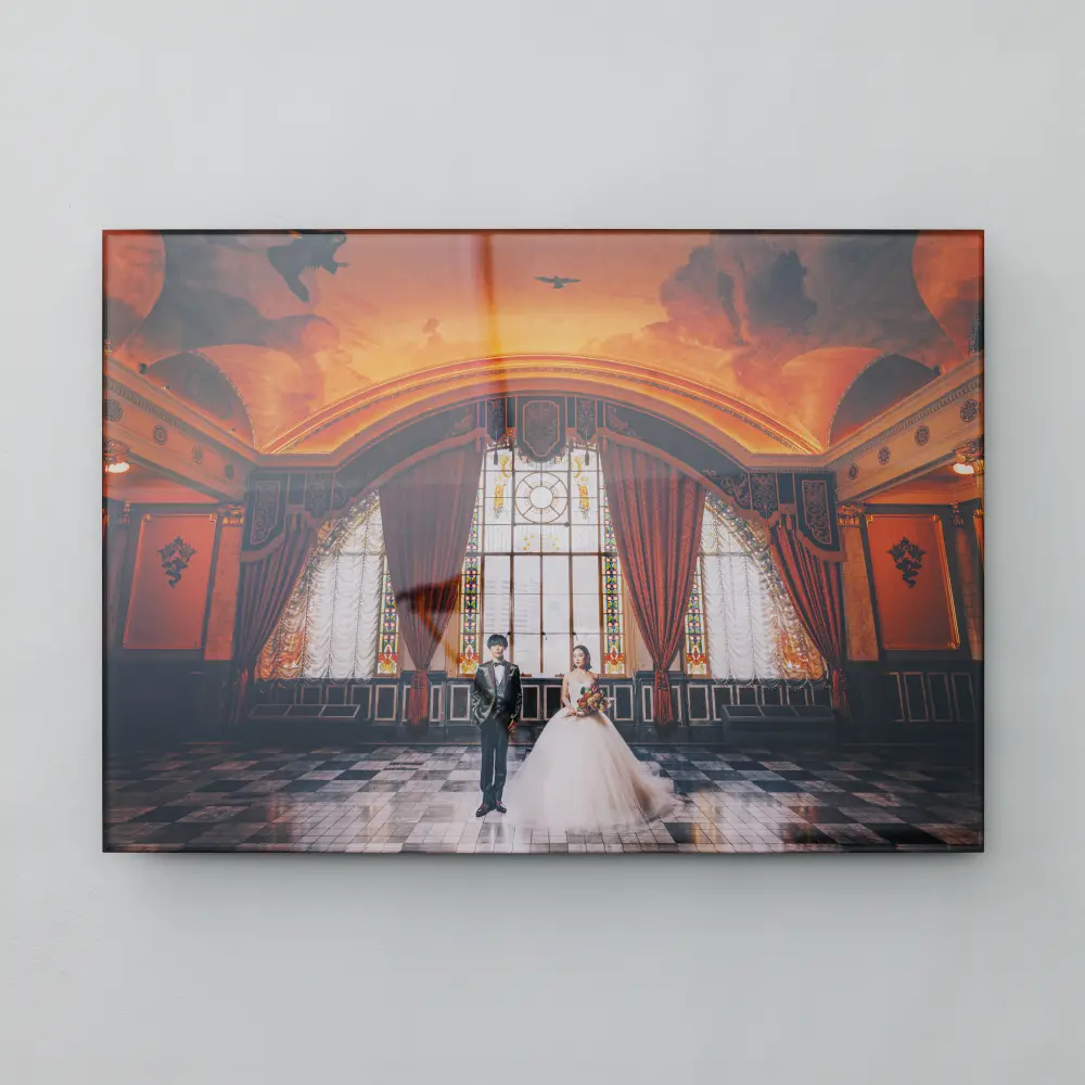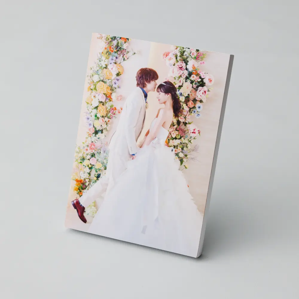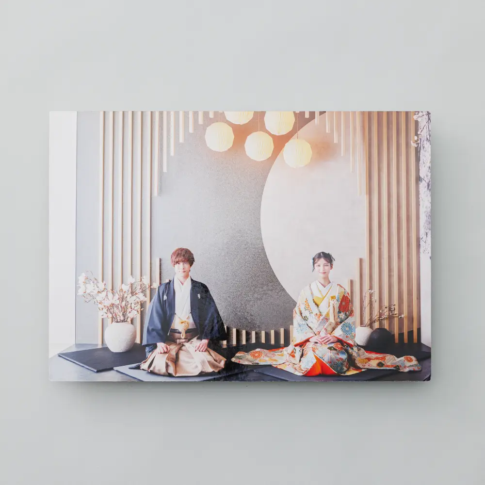 透明度の高いアクリルに写真を貼ることで、紙特有の歪みが出ず美しい仕上がりに。