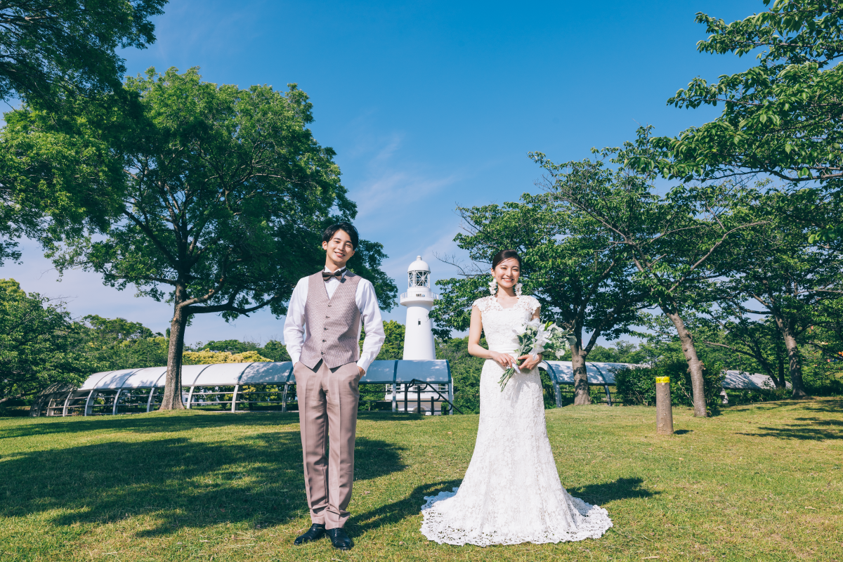 広大な園地にバラ園や風車など撮影のロケーションにぴったりの鶴見緑地公園。芝生公園、欅やポプラの並木など自然に囲まれた空間で開放感ある撮影が叶います。
