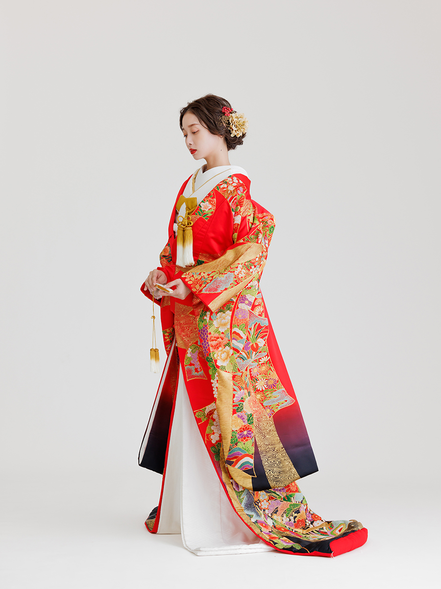 ロケーションフォトにおすすめの色打掛・白無垢をご紹介。人気ゲストハウスの結婚式でも使われる本物の和装のクオリティをお楽しみください。