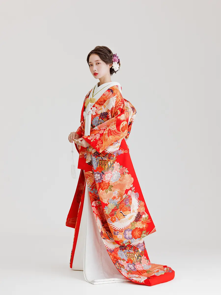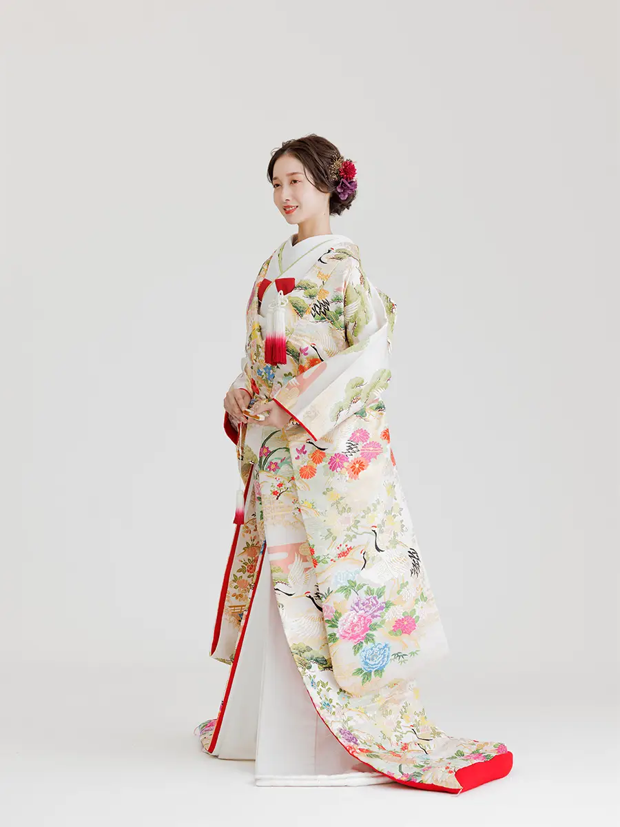 ロケーションフォトにおすすめの色打掛・白無垢をご紹介。人気ゲストハウスの結婚式でも使われる本物の和装のクオリティをお楽しみください。