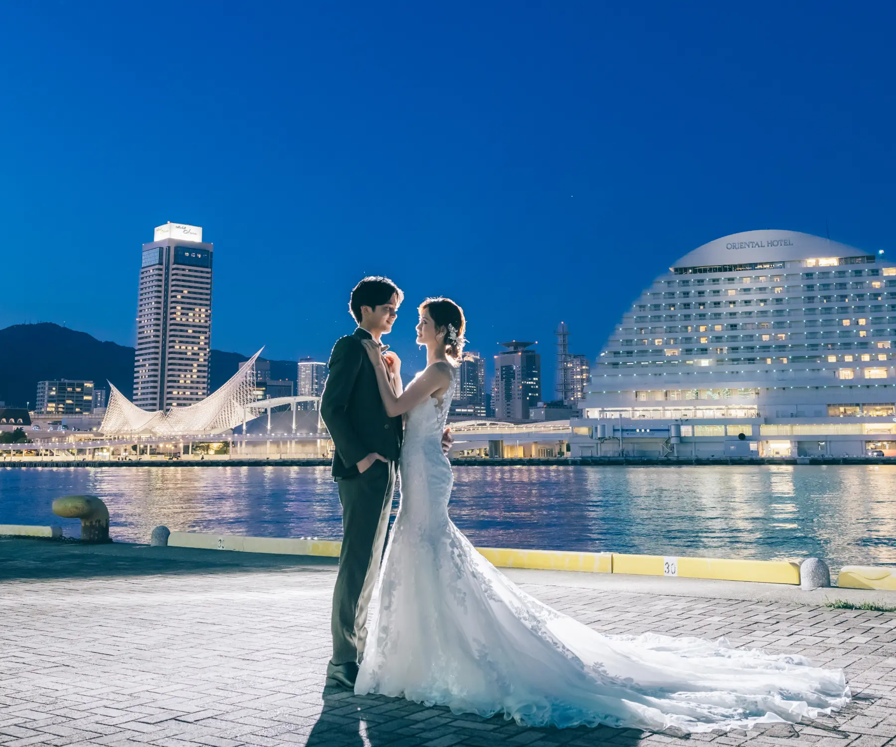 大阪・神戸の歴史的建造物や夜景など、撮影場所のベストスポットを熟知したスタッフが同行するから、おふたりらしい結婚写真が残せます。