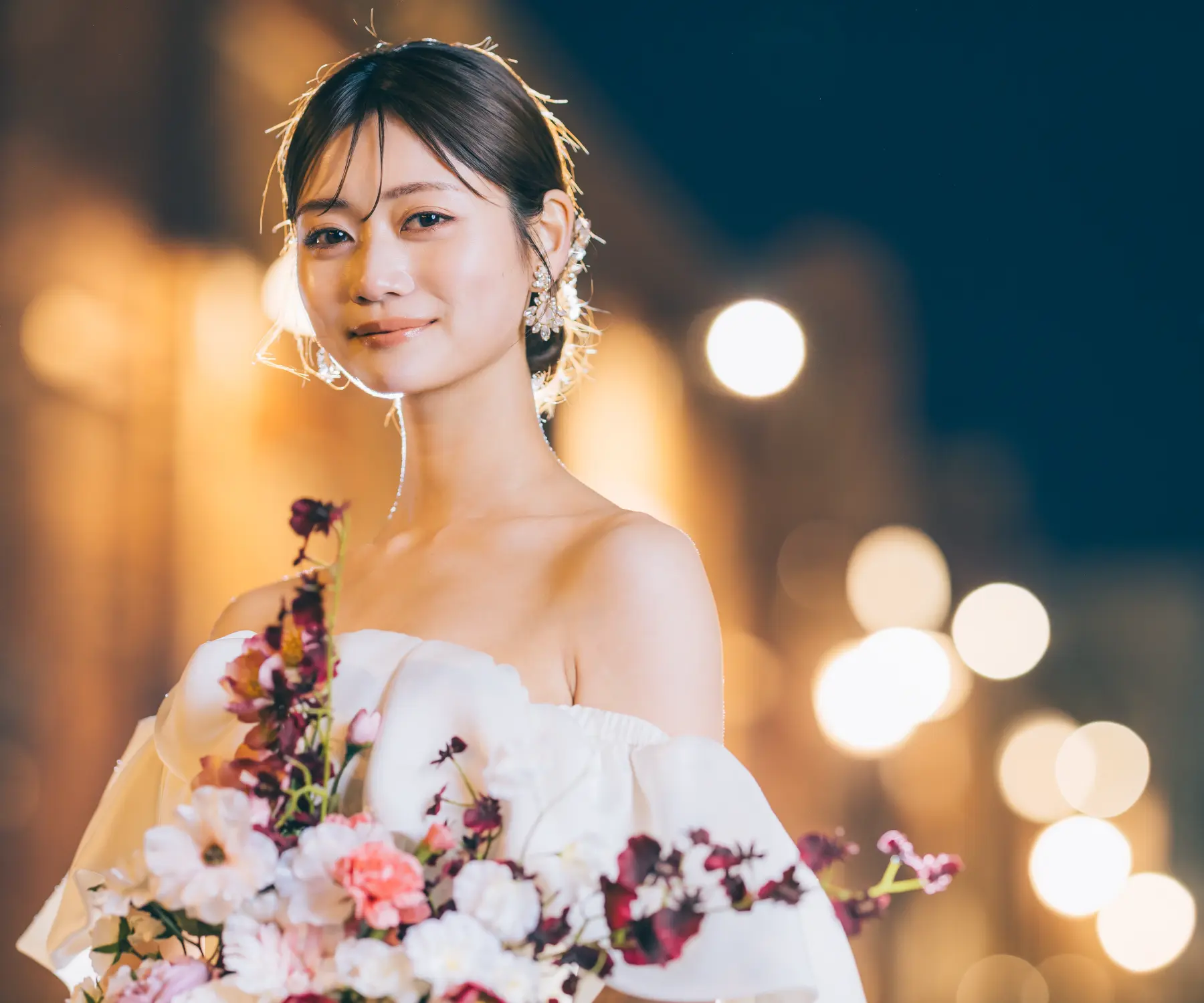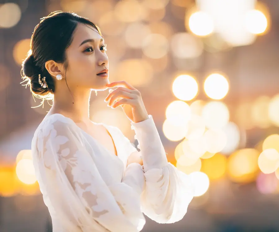 レンズワークやフレーミングといった技術はもちろん、スタイリングを意識した撮影がecrinの特徴。こだわりの衣裳と多彩な背景セットに合わせて、ポーズ・表情をコントロール。ホスピタリティあふれる撮影で、最高の瞬間をかたちにします。