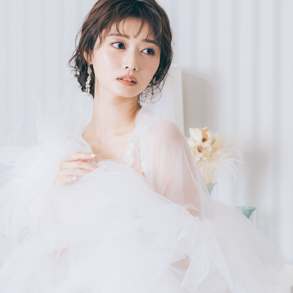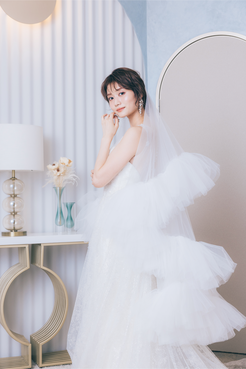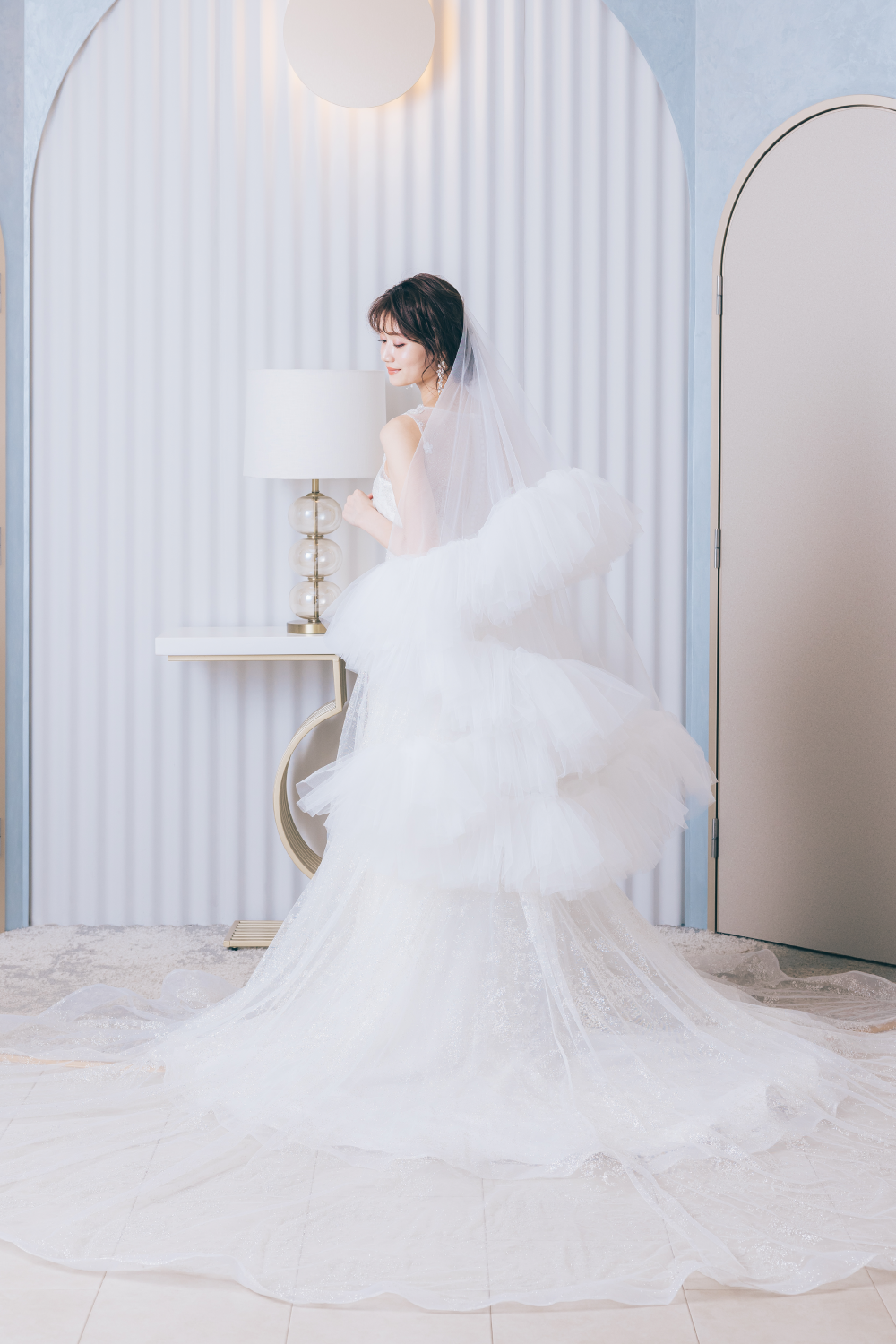 ボリュームたっぷりのヴェールが天使の羽を思わせる。