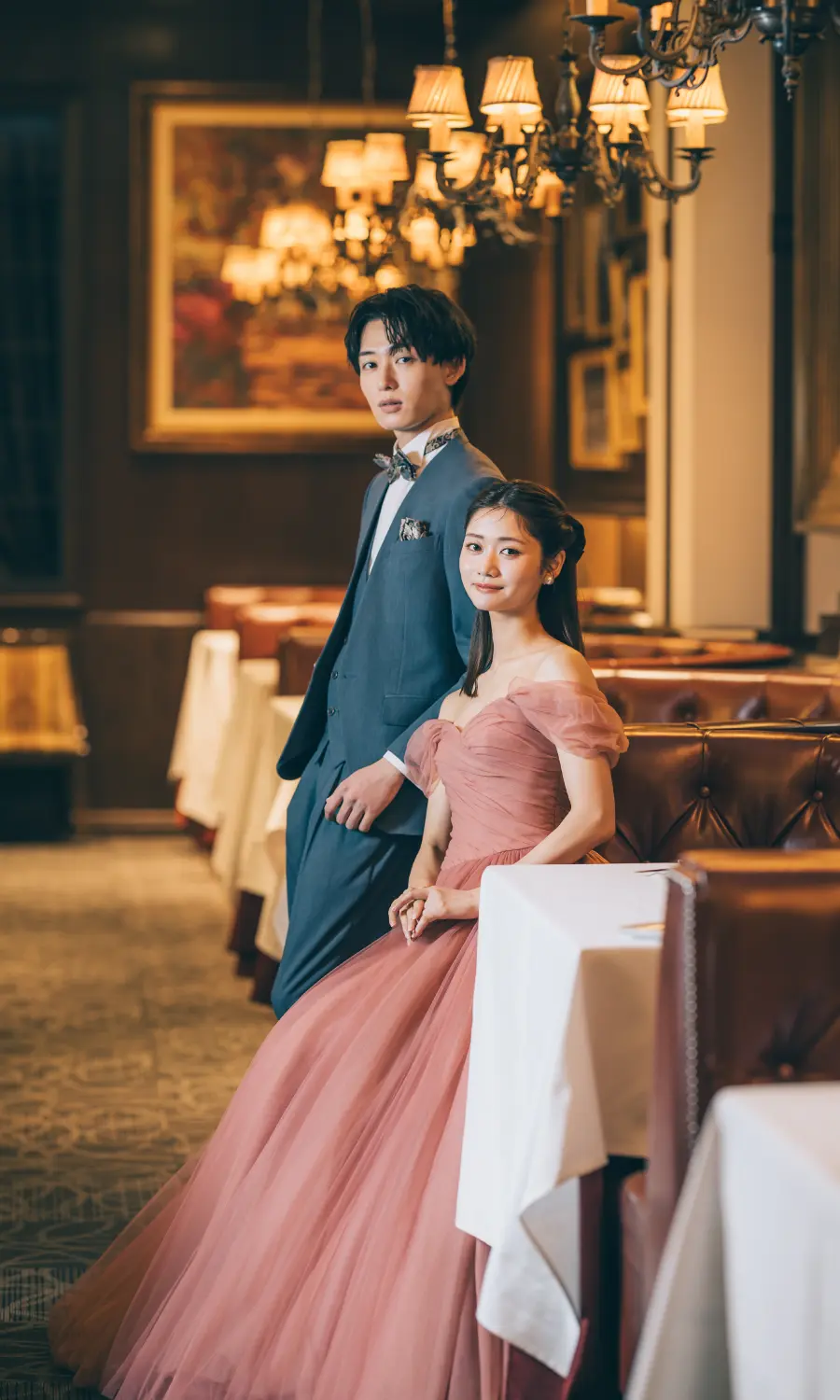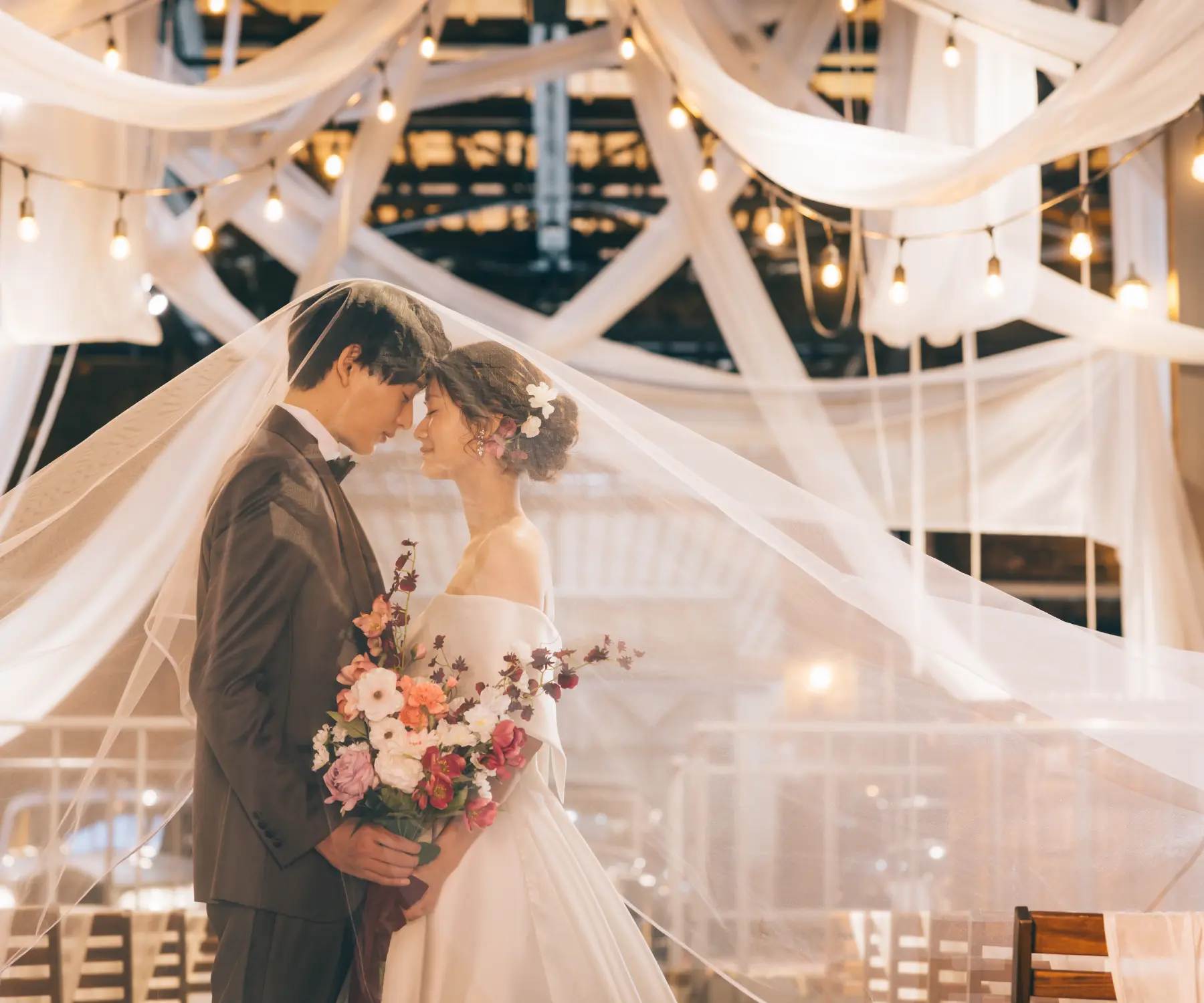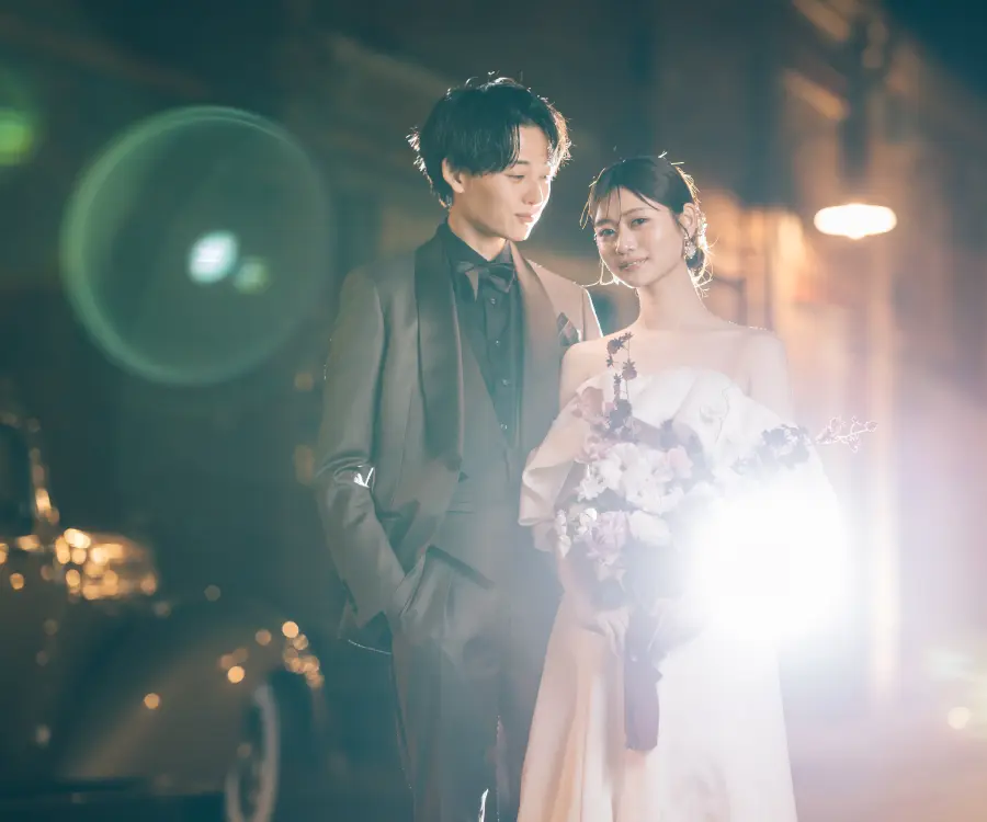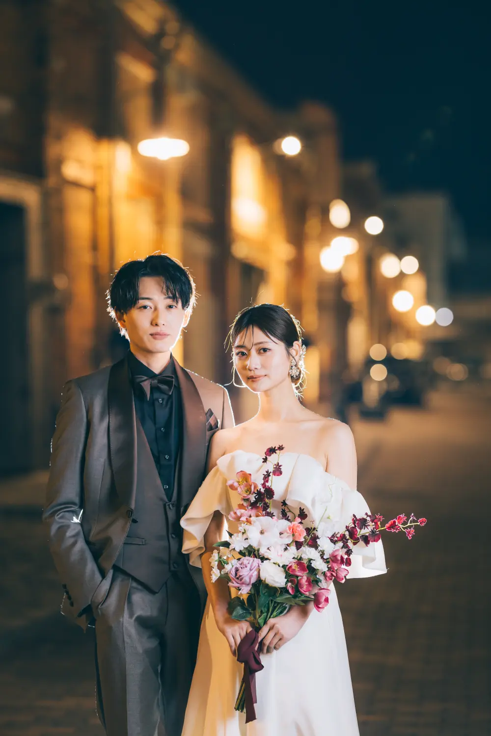 大阪港の赤レンガ倉庫は、歴史あるレンガ造りが印象的なロケーション。クラシックカーが並ぶレンガの街並みは、まるで映画のワンシーンのよう。優雅で気品あふれる写真を残せる、大人のウェディングフォトにふさわしい特別な舞台です。