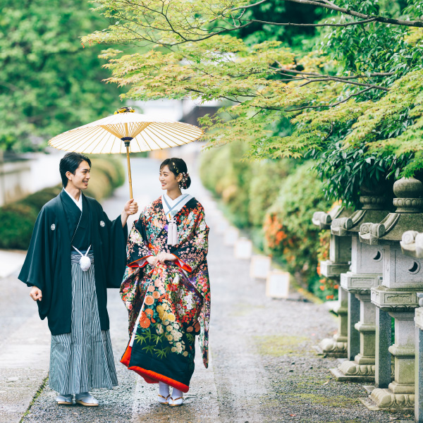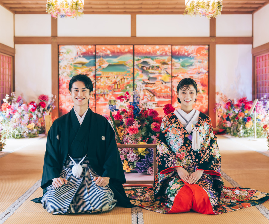 国指定史跡にも指定された壮麗な境内で撮る伝統的な和装写真。紅葉や梅の花が景色を彩る寺院は、どこを切り取っても絵になる人気のロケーションです。