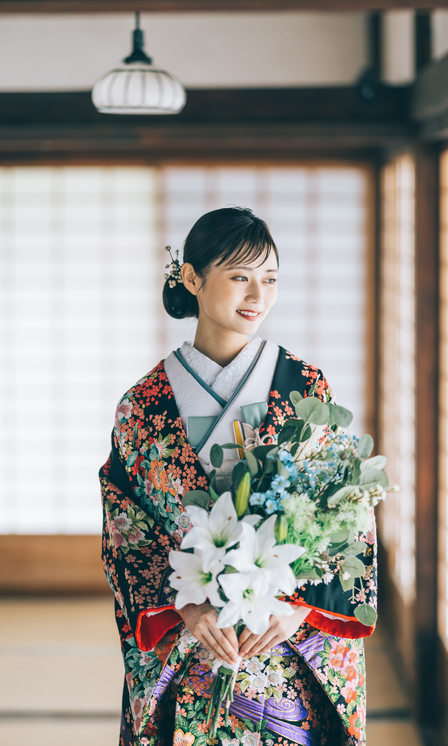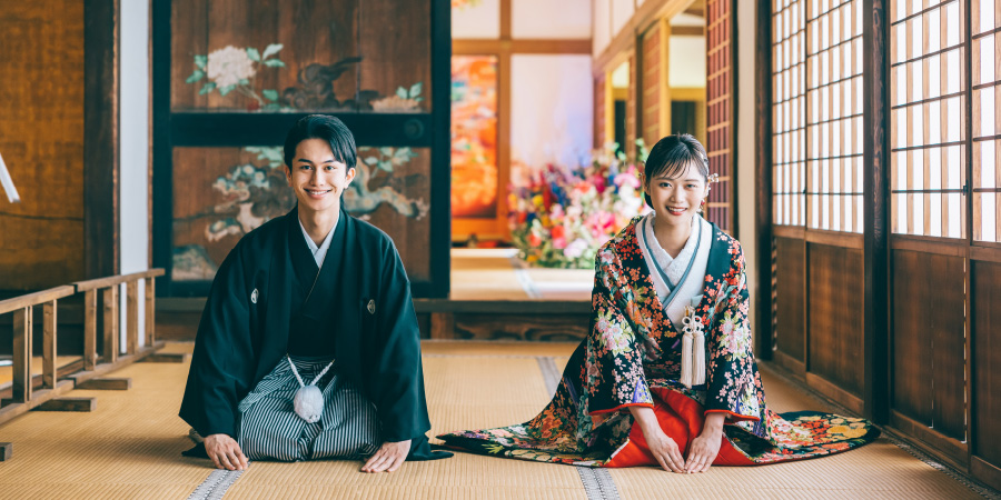 伝統的な和装ロケーションフォト。