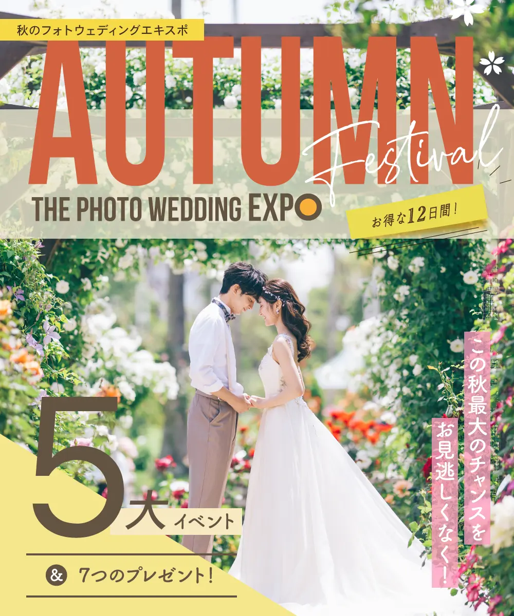 300着を超える衣裳を取り揃え! ウェディングフォトフェスティバル開催中! ご試着体験会&ご成約5大特典付き!