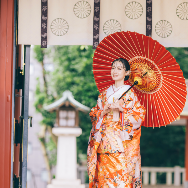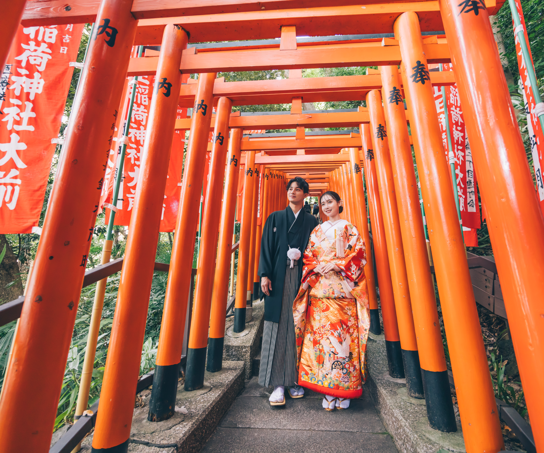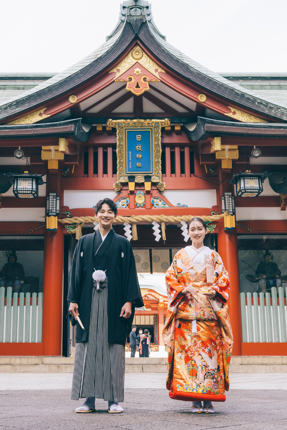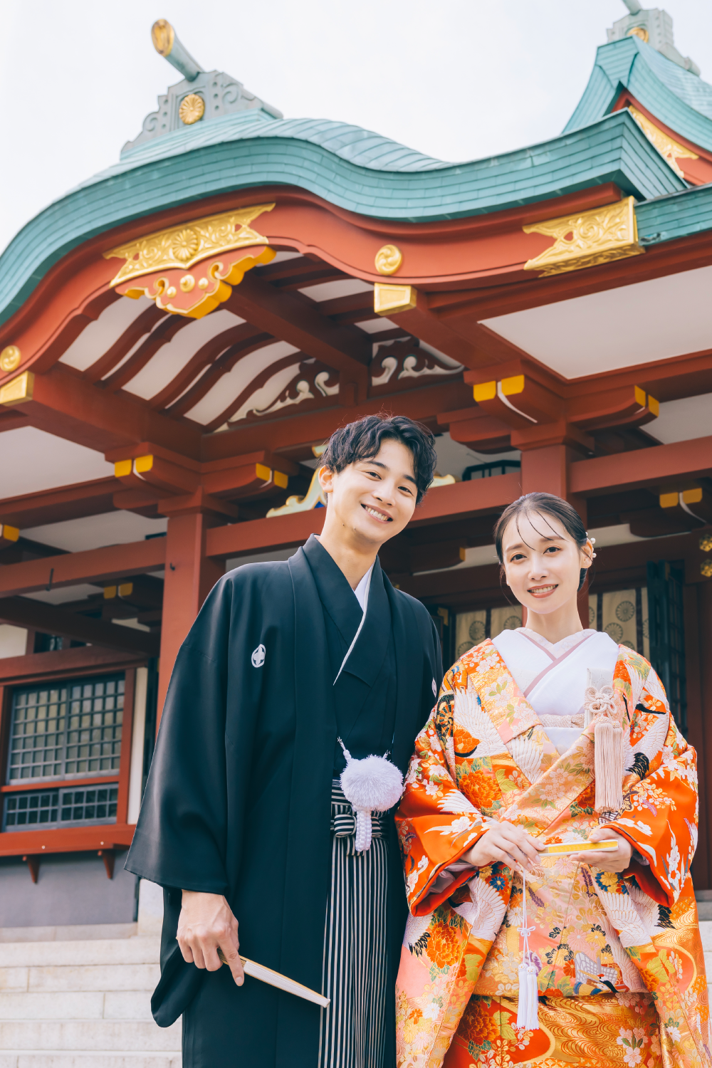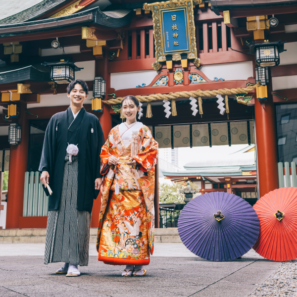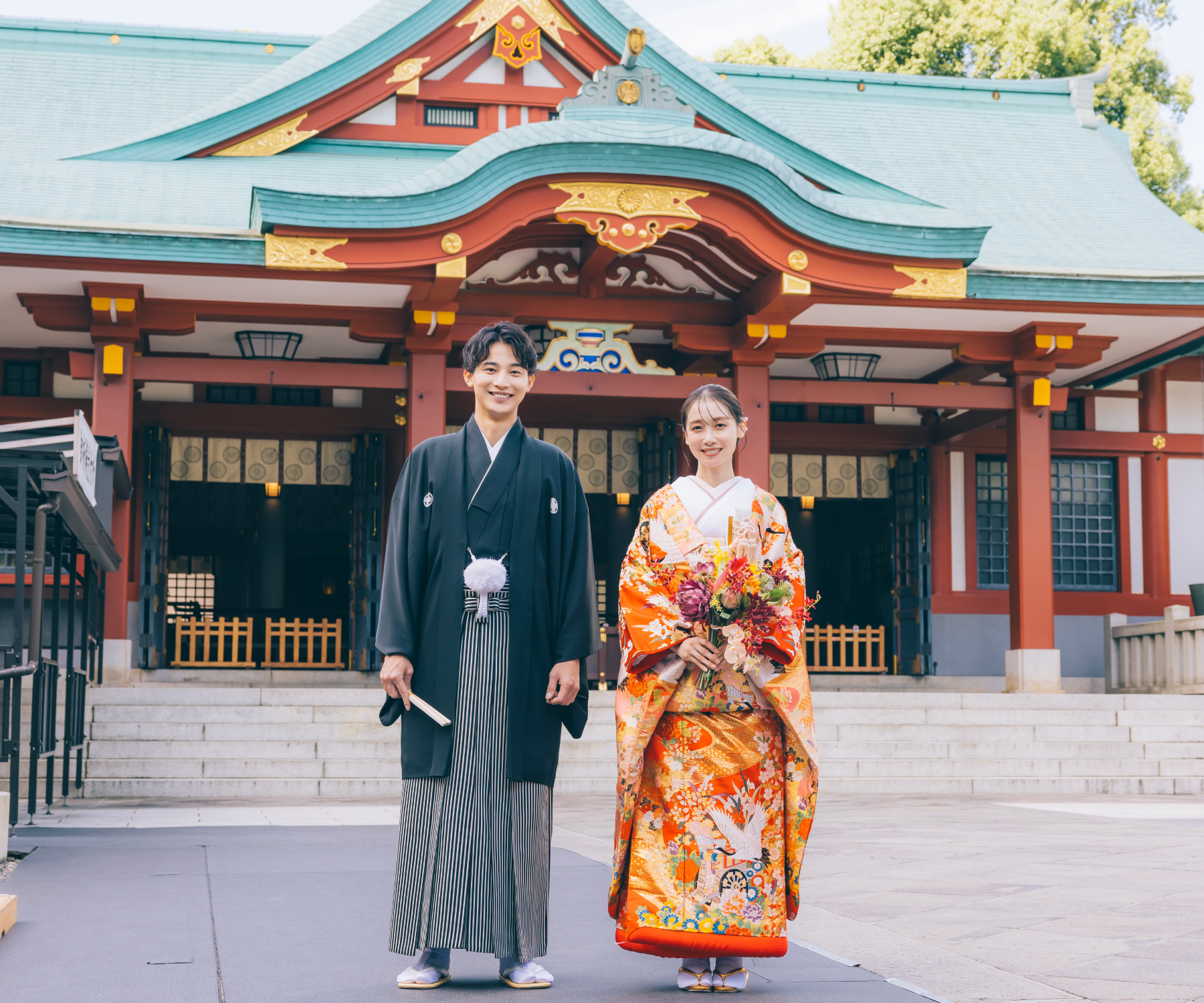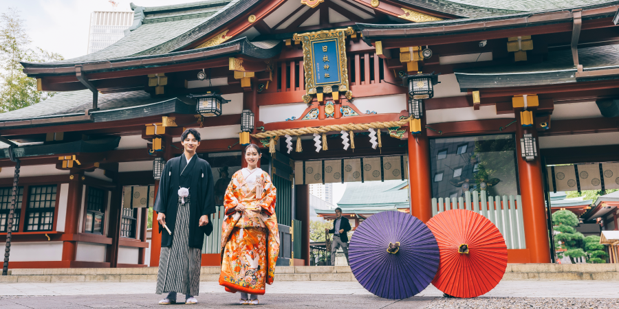 赤坂日枝神社は、江戸時代には徳川家の守護神として篤く信仰された歴史ある神社です。その朱塗りの壮麗な社殿や四季折々の緑が美しい境内は、フォトウェディングのロケ地にぴったり。和装が映える厳かな雰囲気の中、都会の喧騒を忘れる静けさが広がり、トラディショナルな結婚写真が残せます。