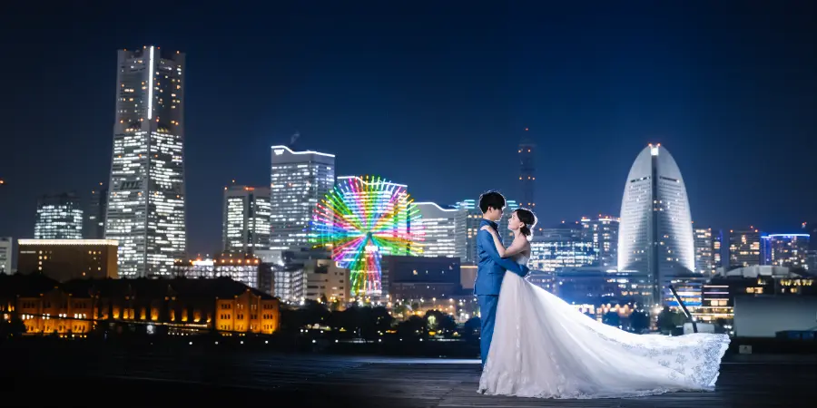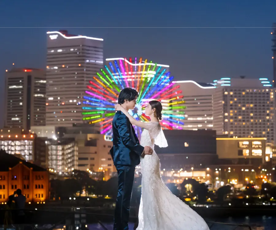 横浜のナイトロケーションのベストスポットを熟知したスタッフが同行するから、おふたりらしい、理想の結婚写真をしっかり残せます。