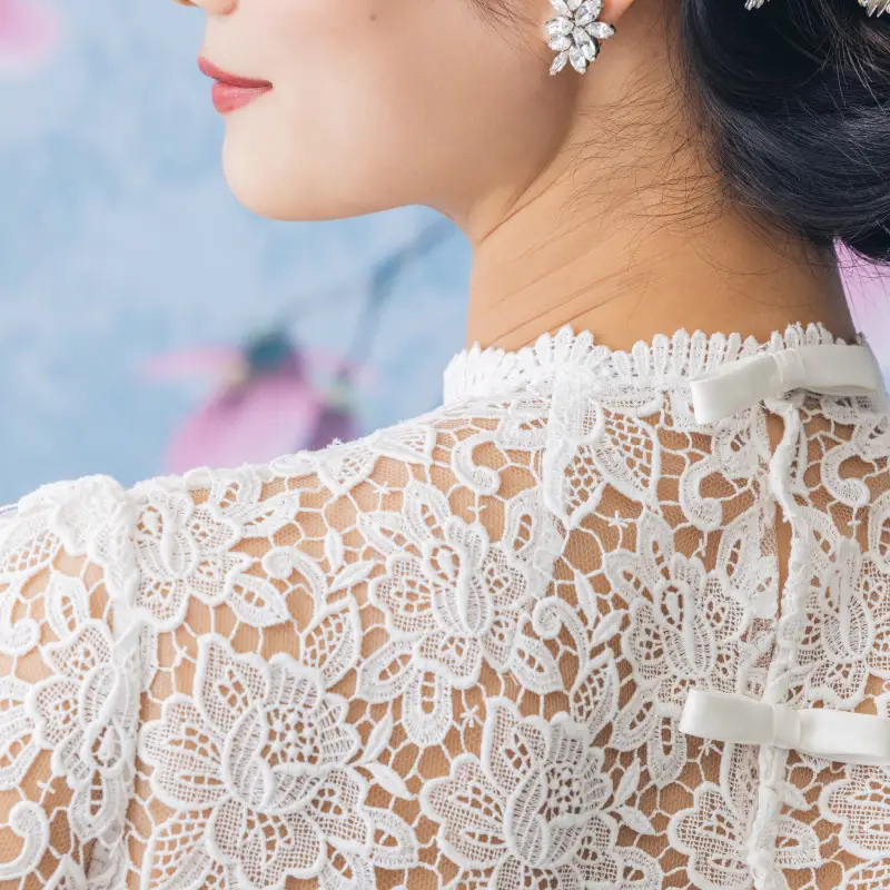 レースがレトロな印象なので少しトーンを落としたリップでも相性◯。