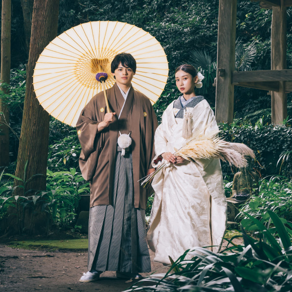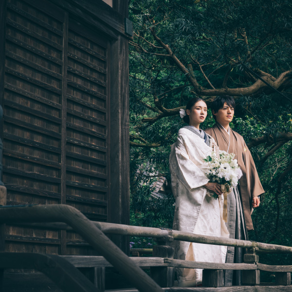 一生に一度のウェディングフォトだから、妥協したくない憧れの和装撮影。 écrinでは上質な和装色打掛・白無垢を豊富にご用意しております。ロケ地のイメージに合わせて、お洒落に小物の色使いを変えてもOK!衣装にこだわった和装ロケーション撮影をお楽しみ下さい。
