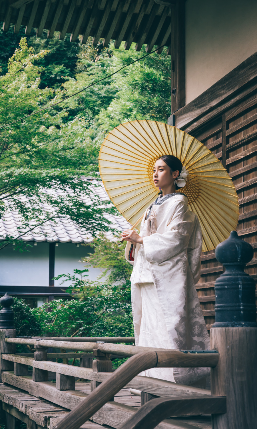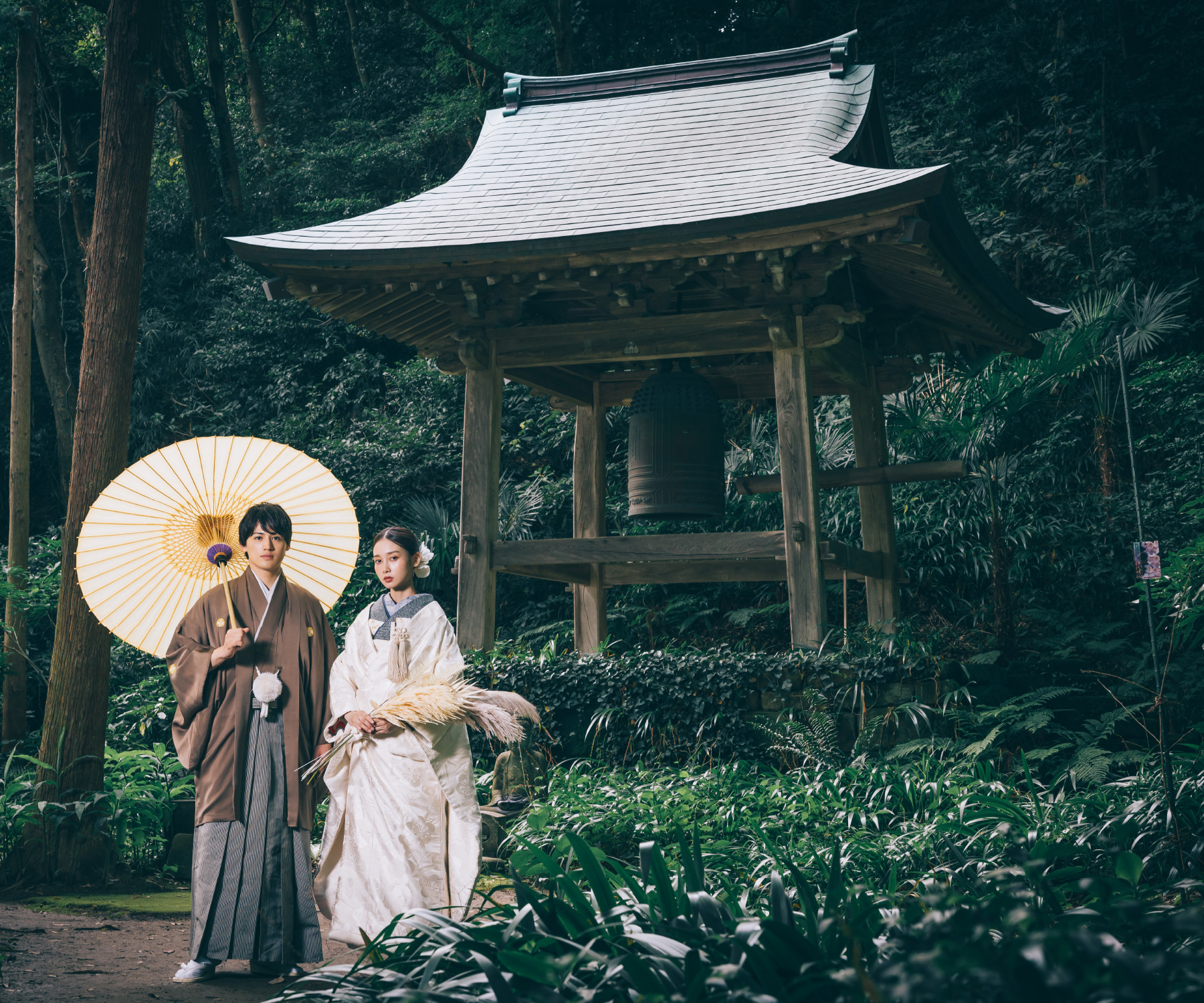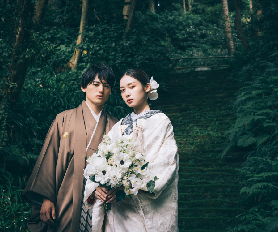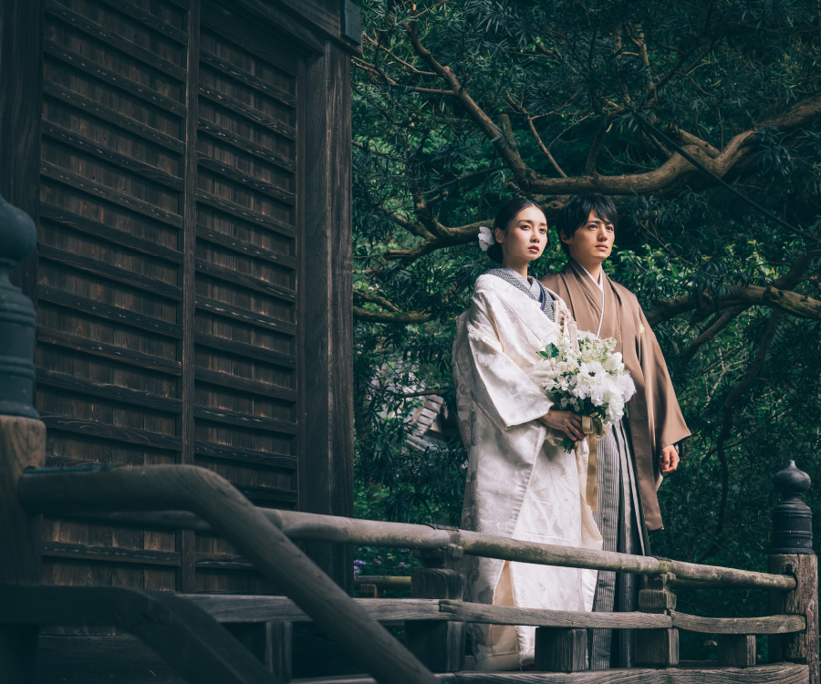 一生に一度のウェディングフォトだから、妥協したくない憧れの和装撮影。 écrinでは上質な和装色打掛・白無垢を豊富にご用意しております。ロケ地のイメージに合わせて、お洒落に小物の色使いを変えてもOK!衣装にこだわった和装ロケーション撮影をお楽しみ下さい。
