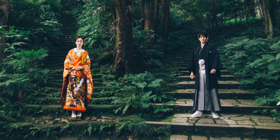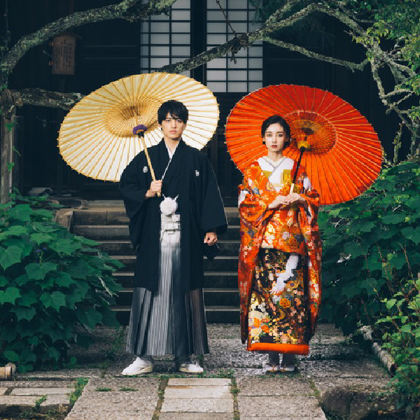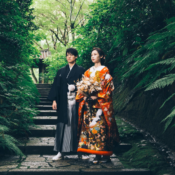 一生に一度のウェディングフォトだから、妥協したくない憧れの和装撮影。 écrinでは上質な和装色打掛・白無垢を豊富にご用意しております。ロケ地のイメージに合わせて、お洒落に小物の色使いを変えてもOK!衣装にこだわった和装ロケーション撮影をお楽しみ下さい。