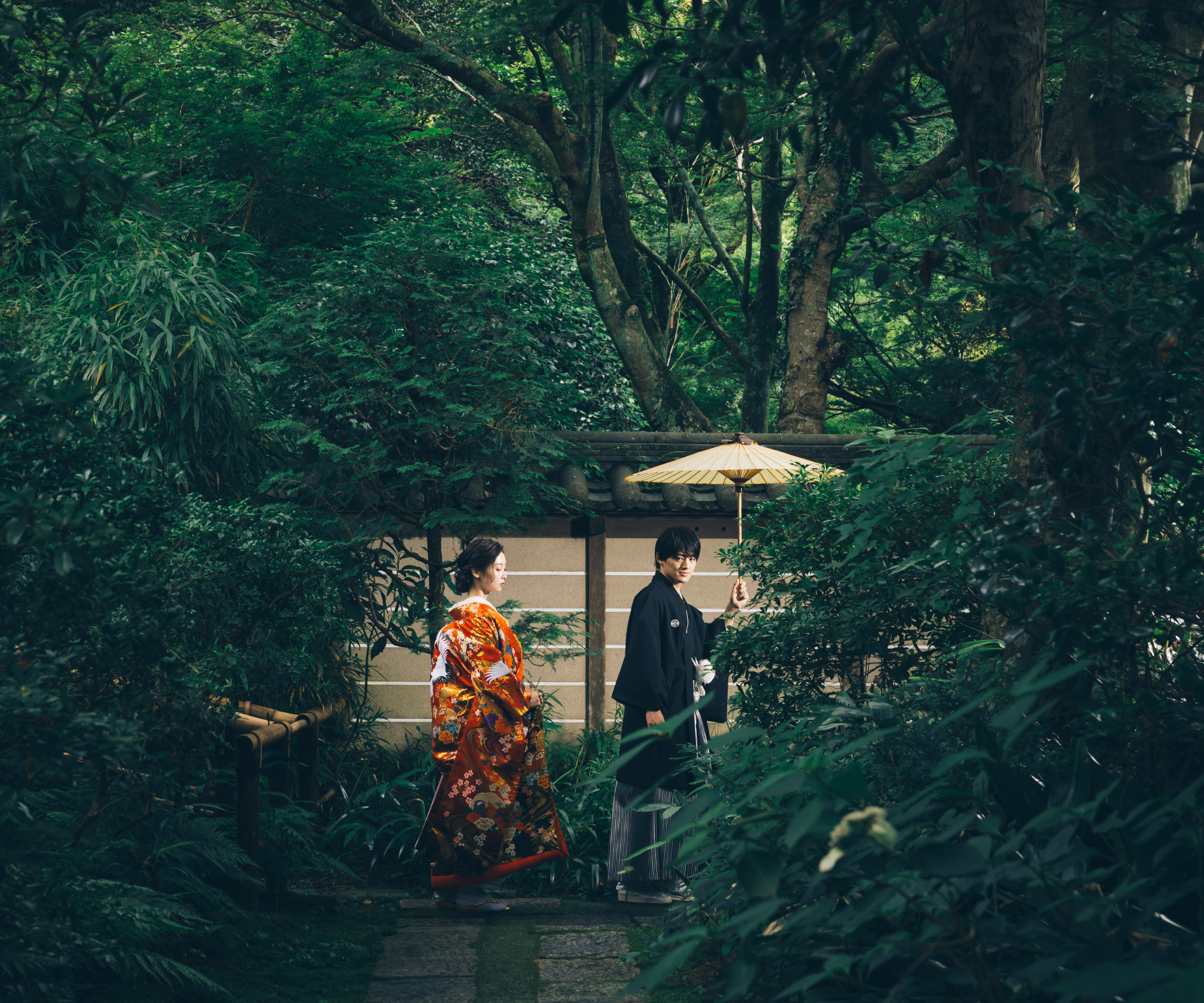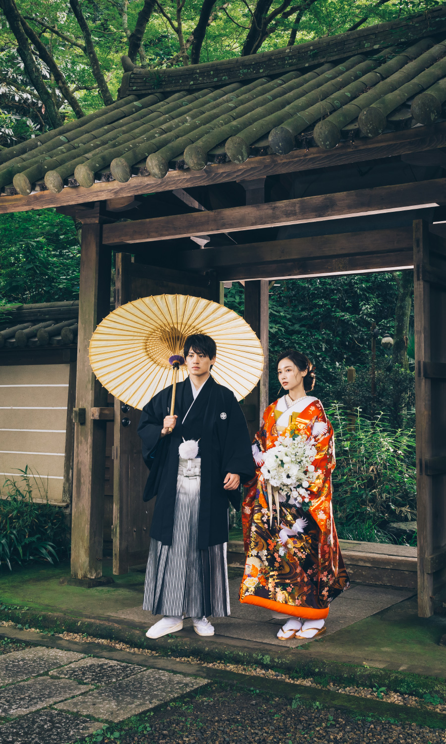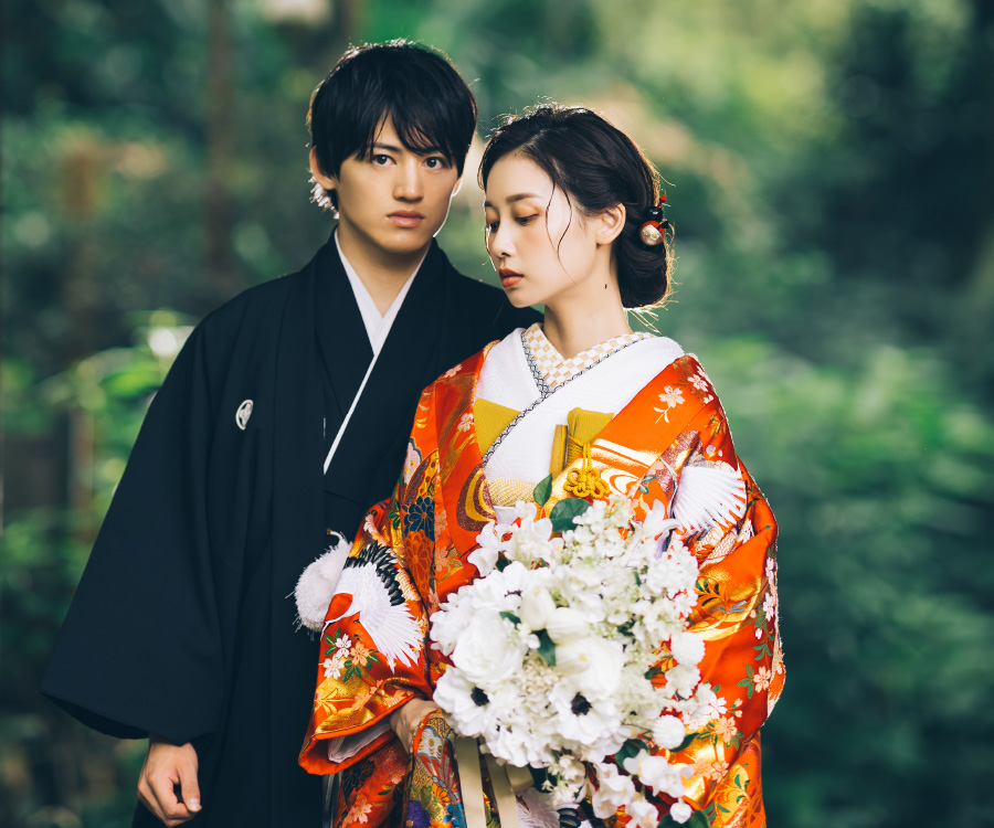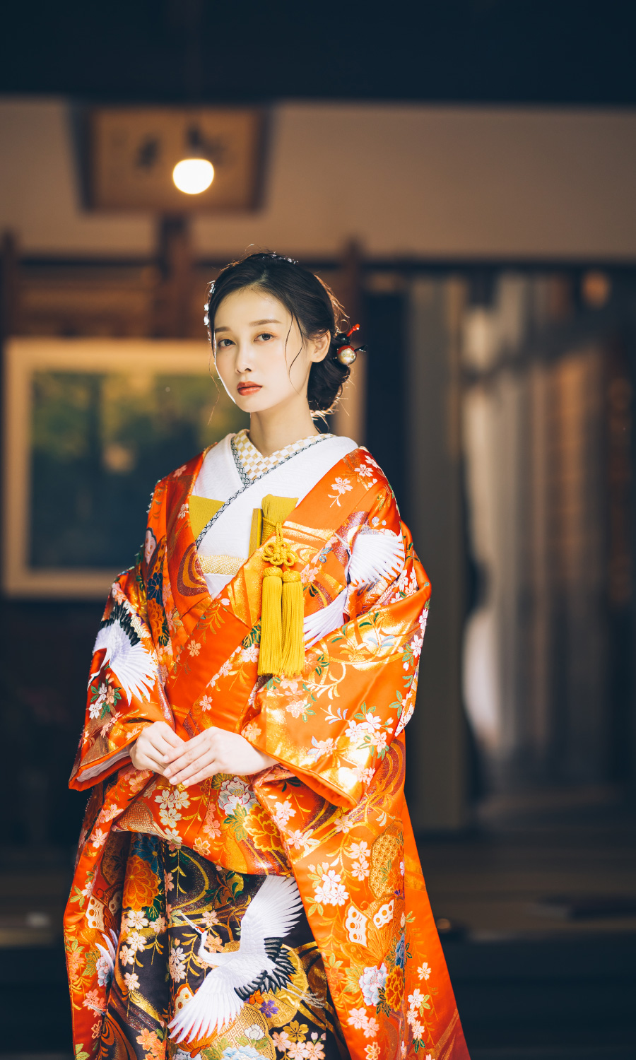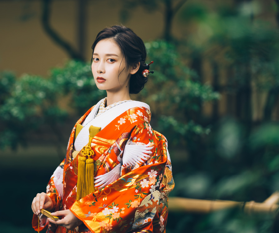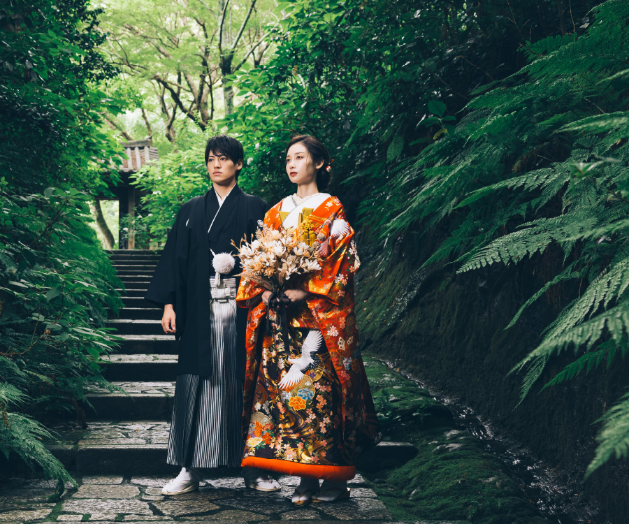 一生に一度のウェディングフォトだから、妥協したくない憧れの和装撮影。 écrinでは上質な和装色打掛・白無垢を豊富にご用意しております。ロケ地のイメージに合わせて、お洒落に小物の色使いを変えてもOK!衣装にこだわった和装ロケーション撮影をお楽しみ下さい。